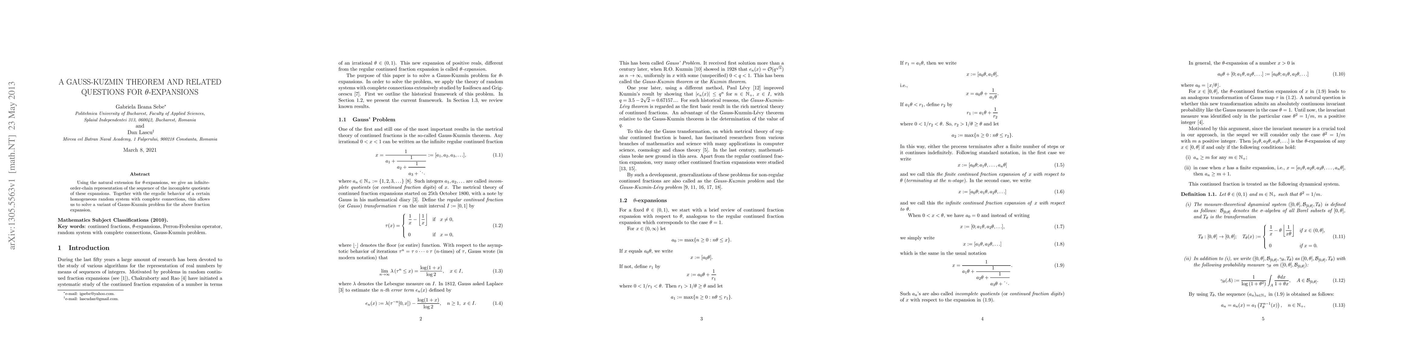 Summary: This paper presents an infinite-order-chain representation for the incomplete quotients of $\theta$-expansions and uses it to solve a variant of the Gauss-Kuzmin problem, leveraging the ergodic behavior of a related random system.