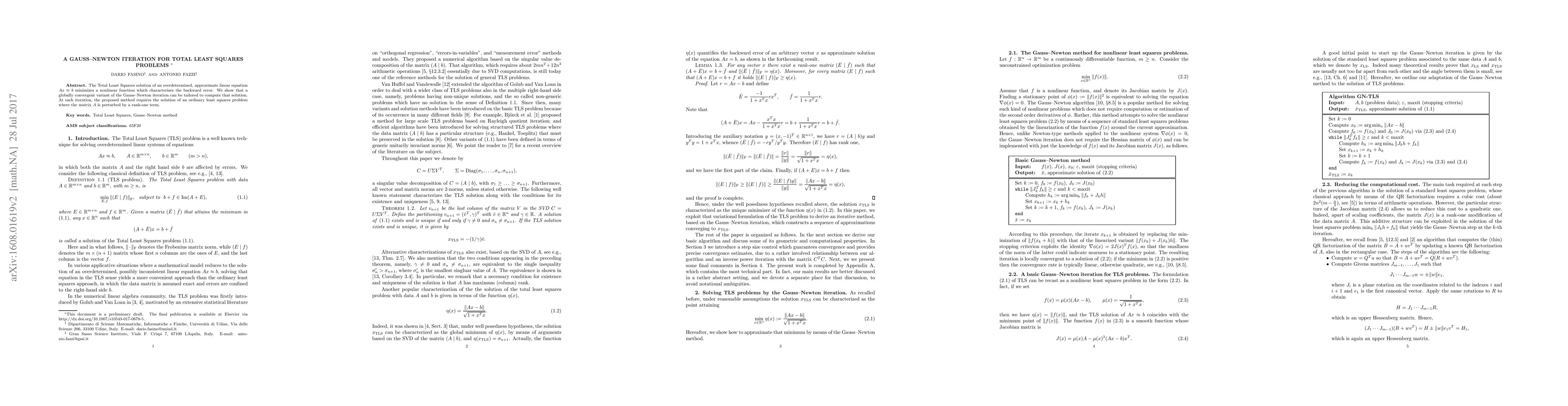 This paper proposes a globally convergent variant of the Gauss-Newton iteration for solving Total Least Squares problems, which minimizes the backward error in overdetermined linear equations. The method requires solving an ordinary least squares problem with a rank-one perturbed matrix at each iteration.