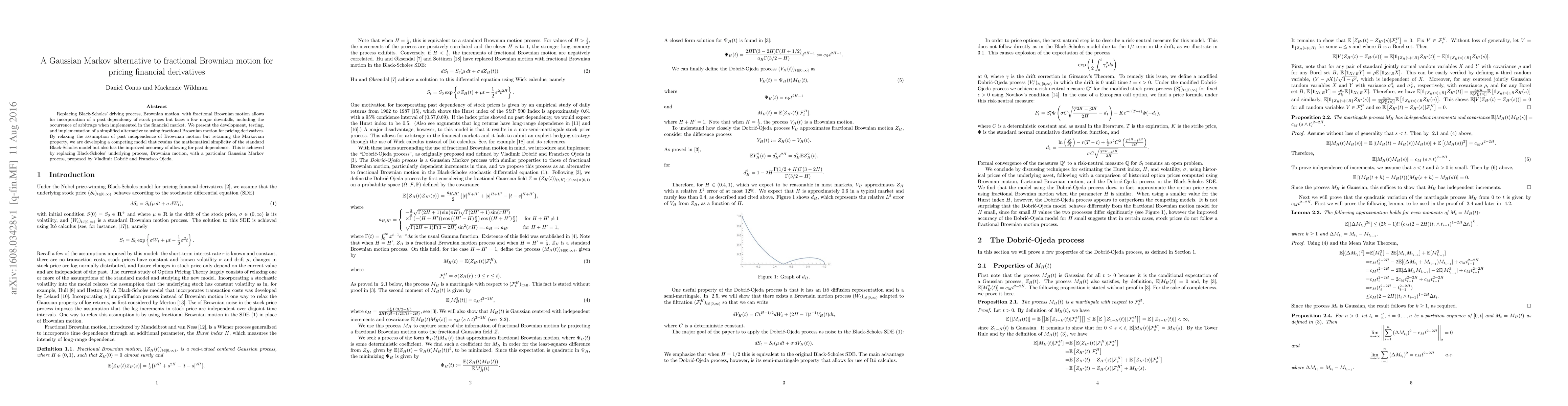 Replacing Black-Scholes' driving process, Brownian motion, with fractional Brownian motion allows for incorporation of a past dependency of stock prices but faces a few major downfalls, including the occurrence of arbitrage when implemented in the financial market. We present the development, testing, and implementation of a simplified alternative to using fractional Brownian motion for pricing derivatives. By relaxing the assumption of past independence of Brownian motion but retaining the Markovian property, we are developing a competing model that retains the mathematical simplicity of the standard Black-Scholes model but also has the improved accuracy of allowing for past dependence. This is achieved by replacing Black-Scholes' underlying process, Brownian motion, with a particular Gaussian Markov process, proposed by Vladimir Dobri\'{c} and Francisco Ojeda.