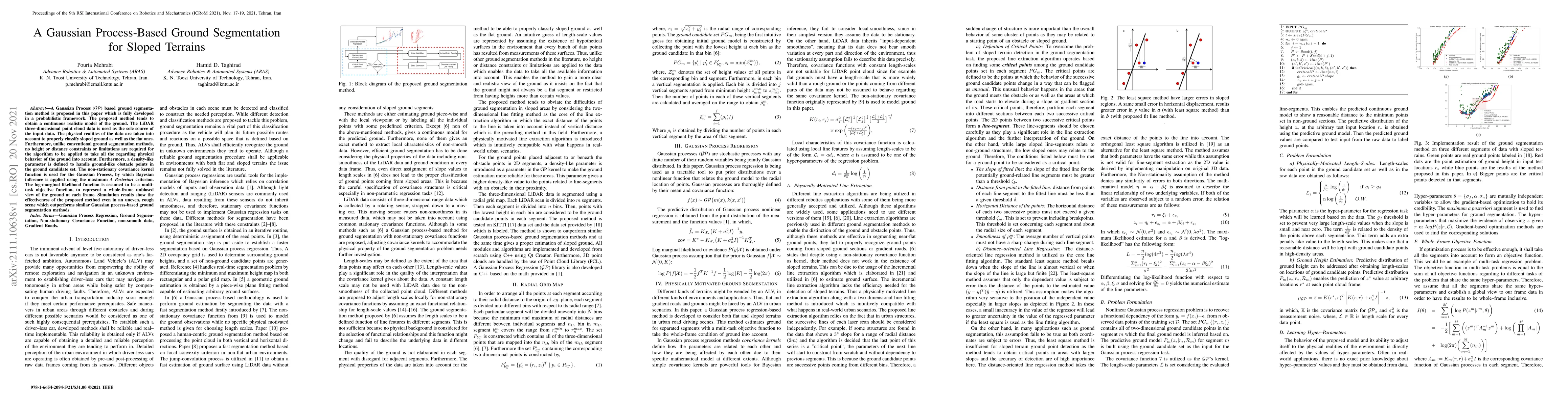 A Gaussian Process-based method is proposed for ground segmentation on sloped terrains using LiDAR point cloud data, achieving realistic models without height or distance constraints. The method outperforms similar methods in uneven scenes with a multi-task objective function.
