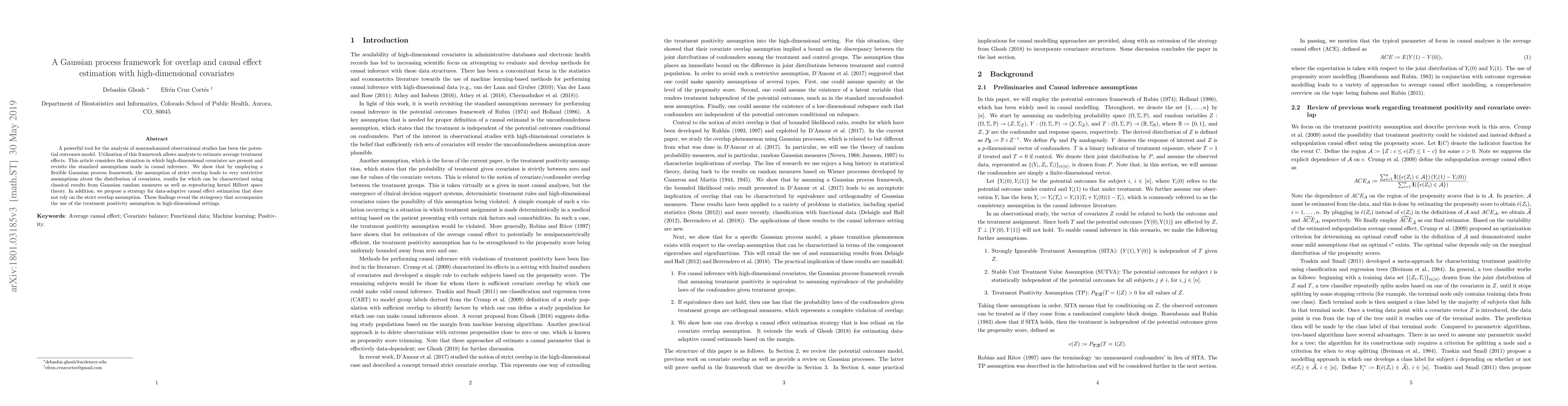 This paper proposes a Gaussian process framework for estimating causal effects in observational studies with high-dimensional covariates, demonstrating that the strict overlap assumption is overly restrictive. It introduces a data-adaptive method for causal effect estimation that does not depend on the strict overlap assumption.