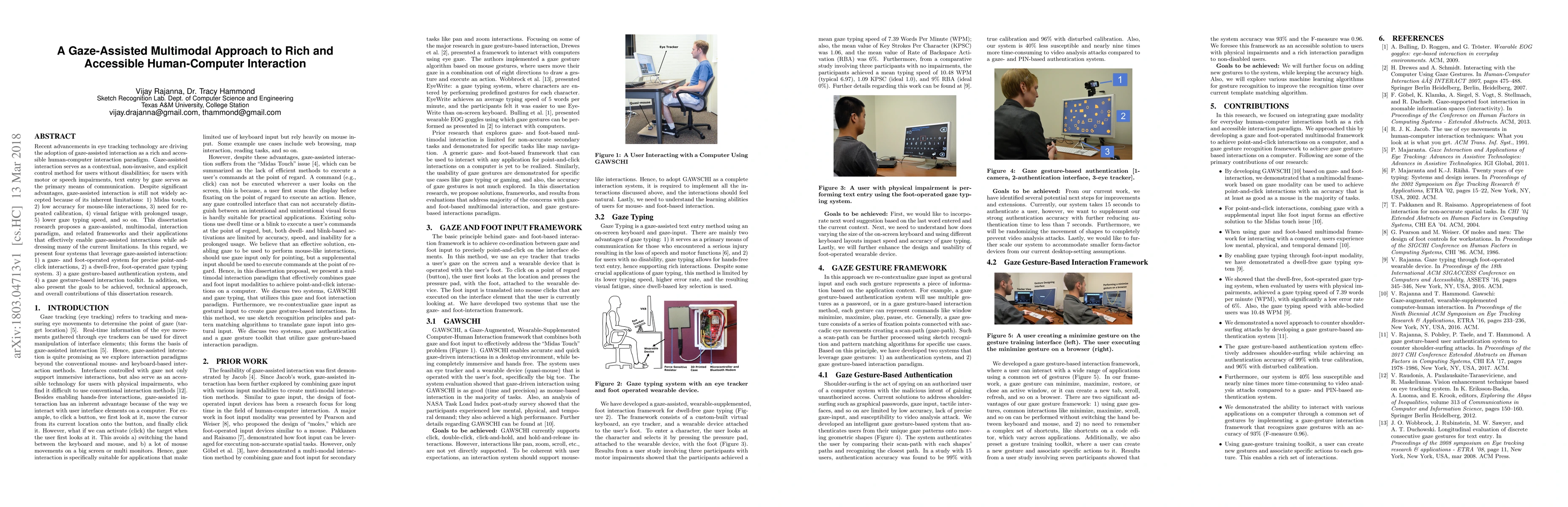 This paper proposes a gaze-assisted, multimodal interaction paradigm to enhance human-computer interaction, addressing limitations like Midas touch and visual fatigue through systems like a gaze- and foot-operated system for precise control. The research aims to improve accessibility and efficiency for users with and without disabilities.