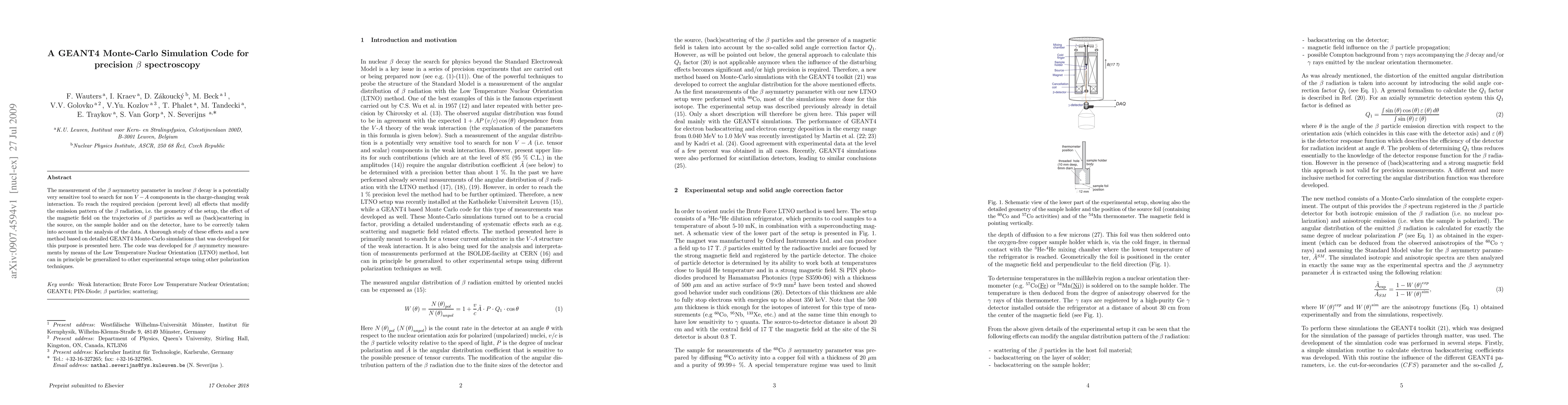Researchers developed a GEANT4 Monte-Carlo simulation code to improve precision in beta spectroscopy measurements, accounting for effects like magnetic fields and scattering that can alter the data, enabling more accurate searches for non-V-A components in the weak interaction.
