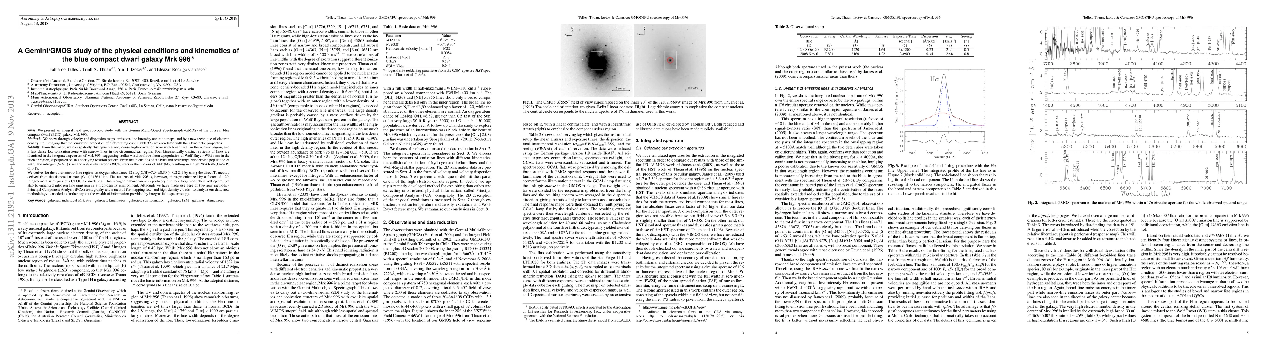 We present an integral field spectroscopic study with the Gemini Multi-Object Spectrograph (GMOS) of the unusual blue compact dwarf (BCD) galaxy Mrk 996. We show through velocity and dispersion maps, emission-line intensity and ratio maps, and by a new technique of electron density limit imaging that the ionization properties of different regions in Mrk 996 are correlated with their kinematic properties. From the maps, we can spatially distinguish a very dense high-ionization zone with broad lines in the nuclear region, and a less dense low-ionization zone with narrow lines in the circumnuclear region. Four kinematically distinct systems of lines are identified in the integrated spectrum of Mrk 996, suggesting stellar wind outflows from a population of Wolf-Rayet (WR) stars in the nuclear region, superposed on an underlying rotation pattern. From the intensities of the blue and red bumps, we derive a population of $\sim$473 late nitrogen (WNL) stars and $\sim$98 early carbon (WCE) stars in the nucleus of Mrk 996, resulting in a high N(WR)/N(O+WR) of 0.19. We derive, for the outer narrow-line region, an oxygen abundance 12+log(O/H)=7.94$\pm$0.30 ($\sim$ 0.2 Z$_\odot$) by using the direct T$_e$ method derived from the detected narrow [OIII]$\lambda$4363 line. The nucleus of Mrk 996 is, however, nitrogen-enhanced by a factor of $\sim$20, in agreement with previous CLOUDY modeling. This nitrogen enhancement is probably due to nitrogen-enriched WR ejecta, but also to enhanced nitrogen line emission in a high-density environment. Although we have made use here of two new methods - Principal Component Analysis (PCA) tomography and a method for mapping low- and high-density clouds - to analyze our data, new methodology is needed to further exploit the wealth of information.