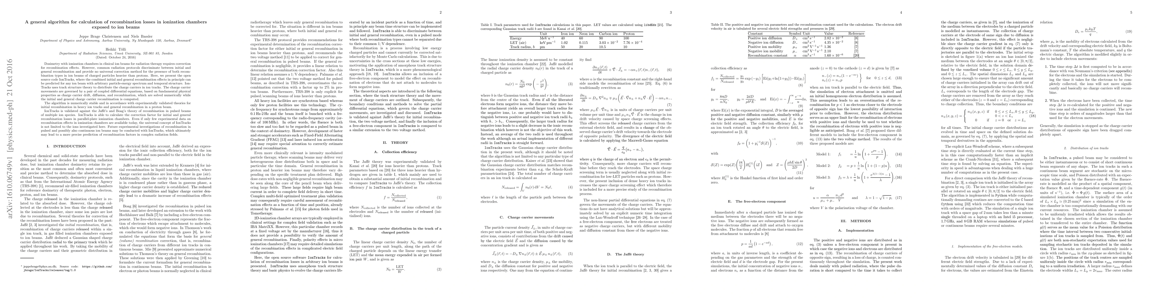 Researchers developed an open-source algorithm called IonTracks to predict recombination losses in ionization chambers exposed to ion beams, providing a universal correction method for both initial and general recombination effects.
