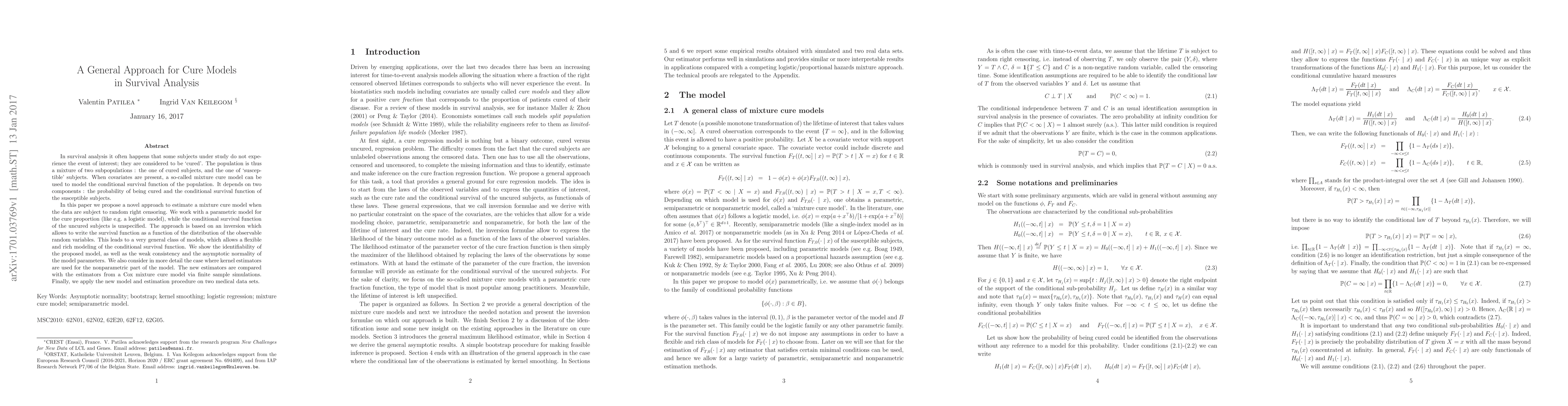 This paper proposes a novel approach for estimating mixture cure models in survival analysis, accommodating random right censoring. It introduces a flexible parametric model for the cure proportion and an unspecified conditional survival function for susceptible subjects, demonstrating the model's identifiability, consistency, and asymptotic normality. The method is compared with Cox mixture cure models and applied to two medical datasets.