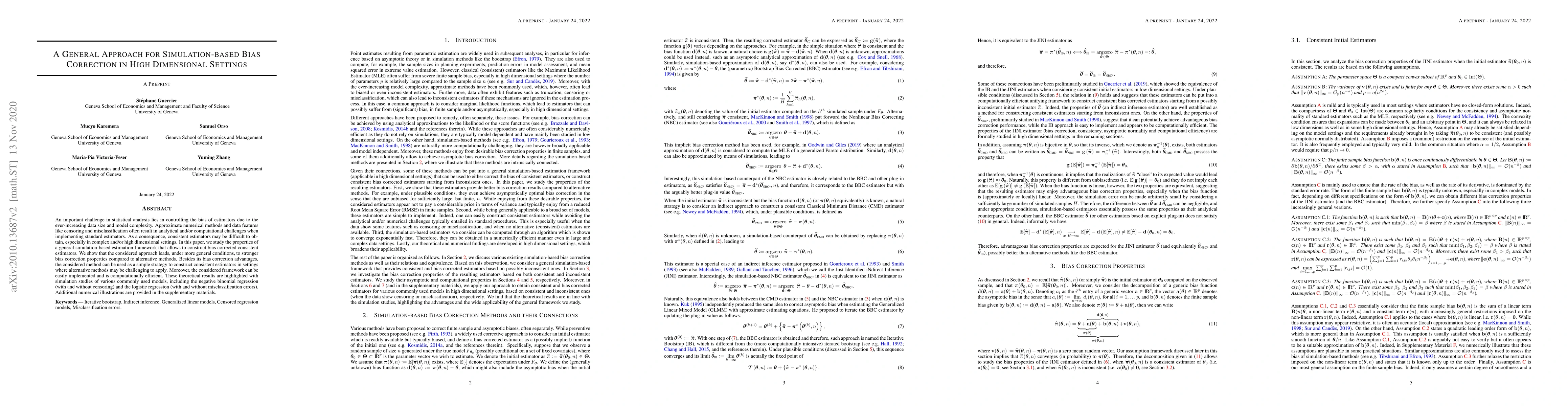 An important challenge in statistical analysis lies in controlling the bias of estimators due to the ever-increasing data size and model complexity. Approximate numerical methods and data features like censoring and misclassification often result in analytical and/or computational challenges when implementing standard estimators. As a consequence, consistent estimators may be difficult to obtain, especially in complex and/or high dimensional settings. In this paper, we study the properties of a general simulation-based estimation framework that allows to construct bias corrected consistent estimators. We show that the considered approach leads, under more general conditions, to stronger bias correction properties compared to alternative methods. Besides its bias correction advantages, the considered method can be used as a simple strategy to construct consistent estimators in settings where alternative methods may be challenging to apply. Moreover, the considered framework can be easily implemented and is computationally efficient. These theoretical results are highlighted with simulation studies of various commonly used models, including the negative binomial regression (with and without censoring) and the logistic regression (with and without misclassification errors). Additional numerical illustrations are provided in the supplementary materials.