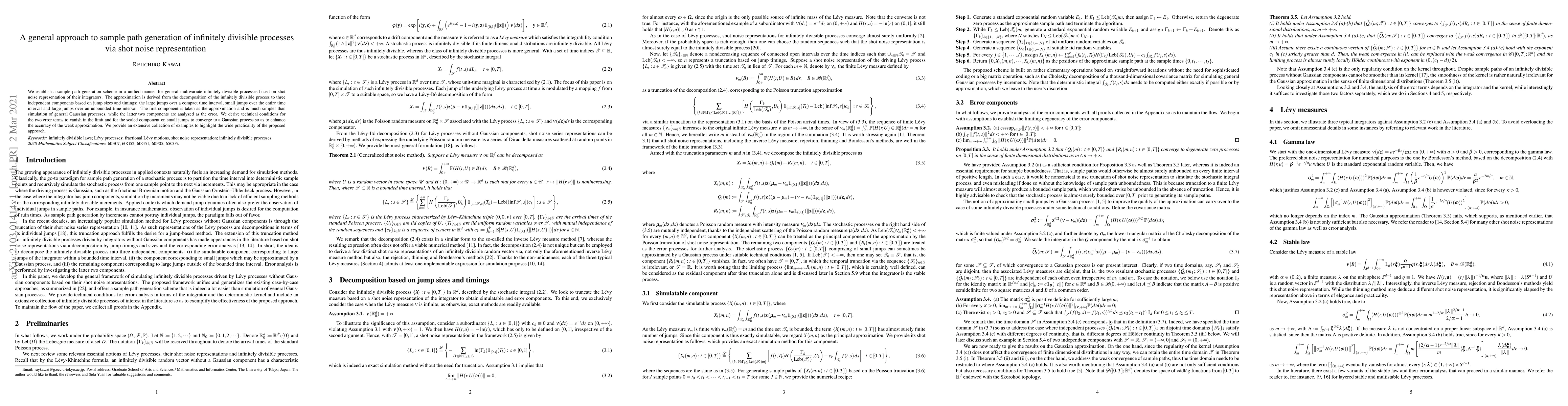 We establish a sample path generation scheme in a unified manner for general multivariate infinitely divisible processes based on shot noise representation of their integrators. The approximation is derived from the decomposition of the infinitely divisible process to three independent components based on jump sizes and timings: the large jumps over a compact time interval, small jumps over the entire time interval and large jumps over an unbounded time interval. The first component is taken as the approximation and is much simpler than simulation of general Gaussian processes, while the latter two components are analyzed as the error. We derive technical conditions for the two error terms to vanish in the limit and for the scaled component on small jumps to converge to a Gaussian process so as to enhance the accuracy of the weak approximation. We provide an extensive collection of examples to highlight the wide practicality of the proposed approach.