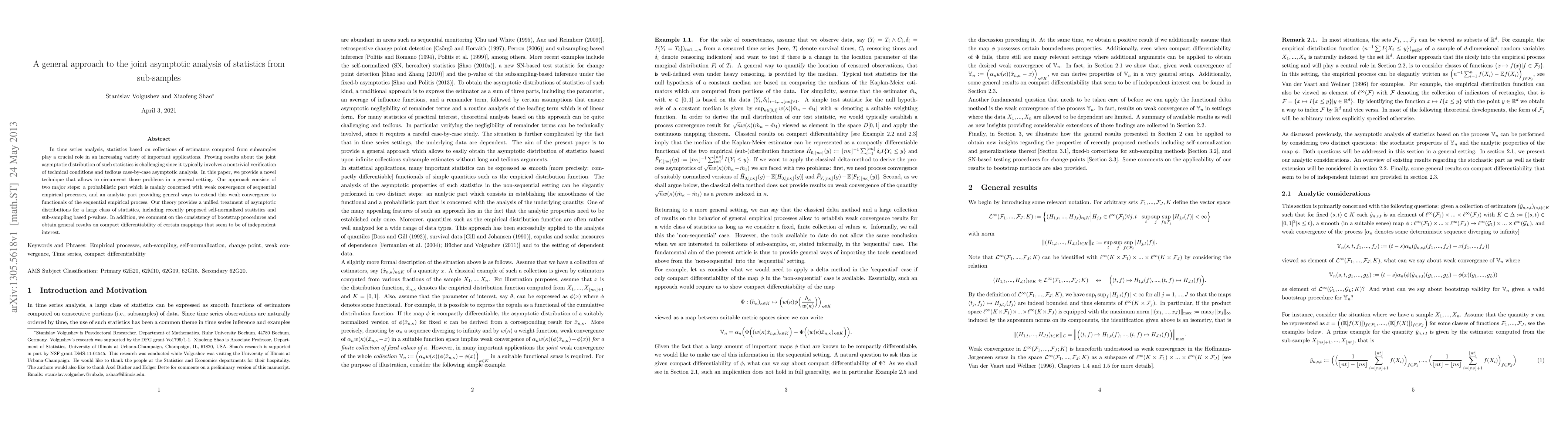 Researchers develop a general approach to analyze statistics from sub-samples, providing a unified treatment of asymptotic distributions for various statistics, including self-normalized statistics and p-values.