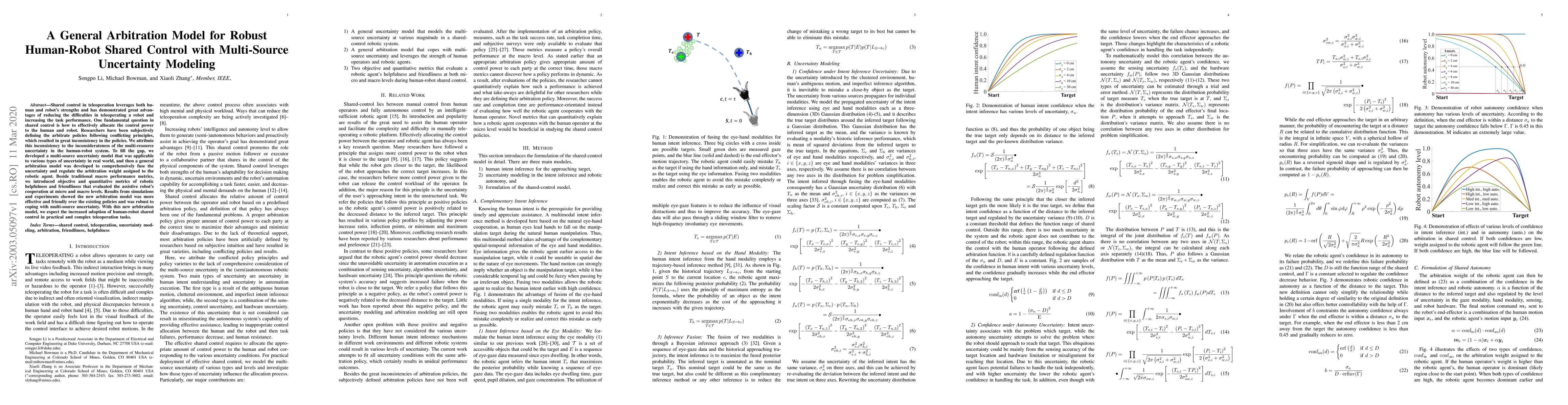 This paper proposes a general arbitration model for robust human-robot shared control, addressing inconsistencies in existing policies by incorporating multi-source uncertainty modeling. The model effectively allocates control power and introduces new metrics for evaluating robotic cooperation, demonstrating improved performance and robustness in simulations and experiments.