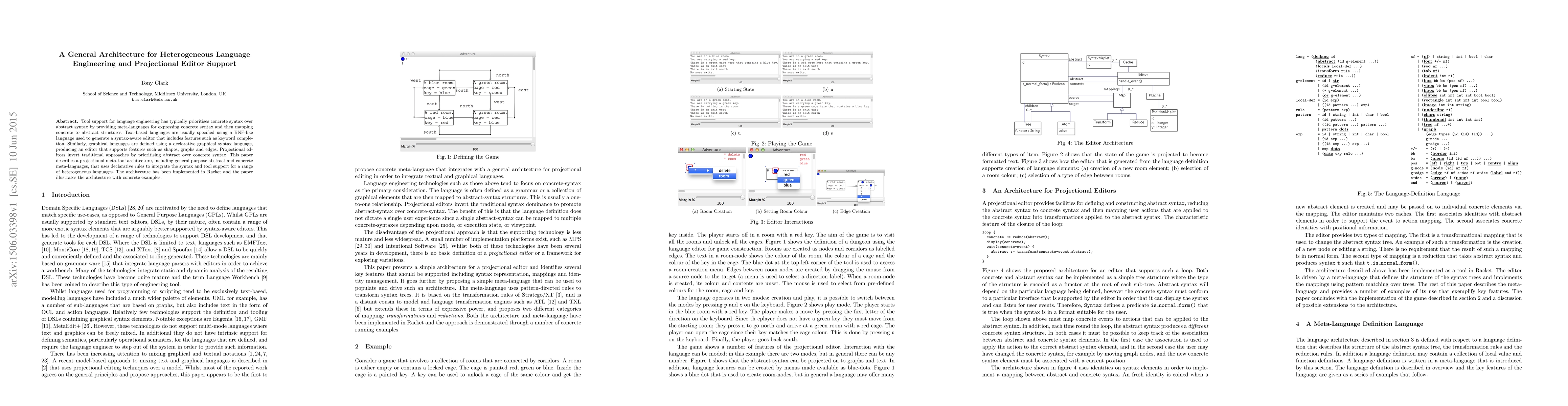 This paper presents a projectional meta-tool architecture for heterogeneous language engineering, prioritizing abstract syntax over concrete syntax. It introduces general-purpose meta-languages and uses declarative rules to integrate syntax and tool support for various languages, implemented in Racket with illustrative examples.