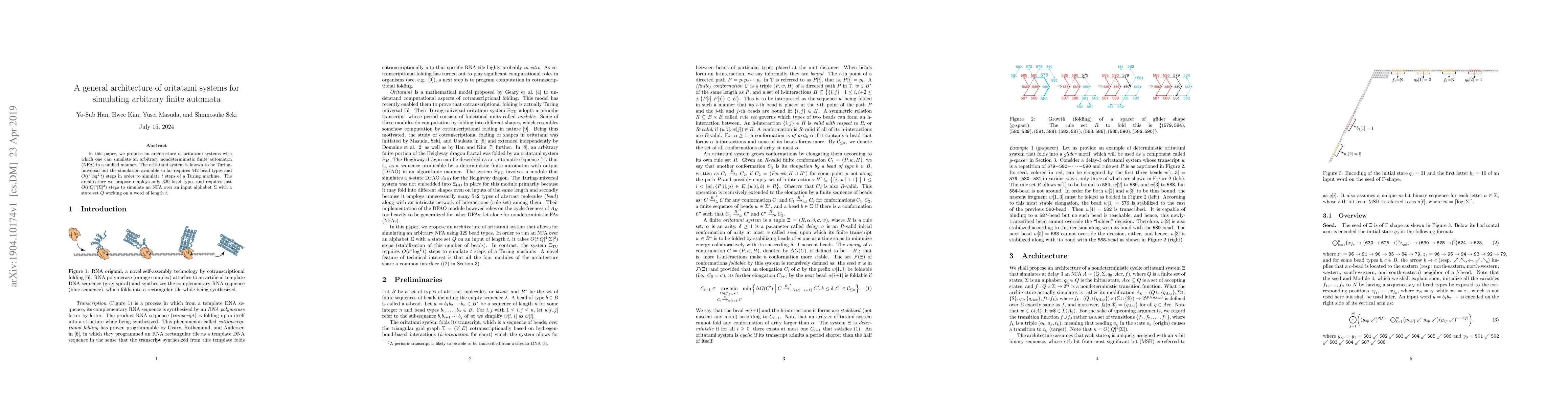 A new architecture is proposed to simulate arbitrary finite automata using oritatami systems, reducing the number of required bead types from 542 to 329 and simulation steps from $O(t^4 ext{log}^2 t)$ to $O(t |Q|^4 |\Sigma|^2)$. This enables unified simulation of nondeterministic finite automata with improved efficiency.