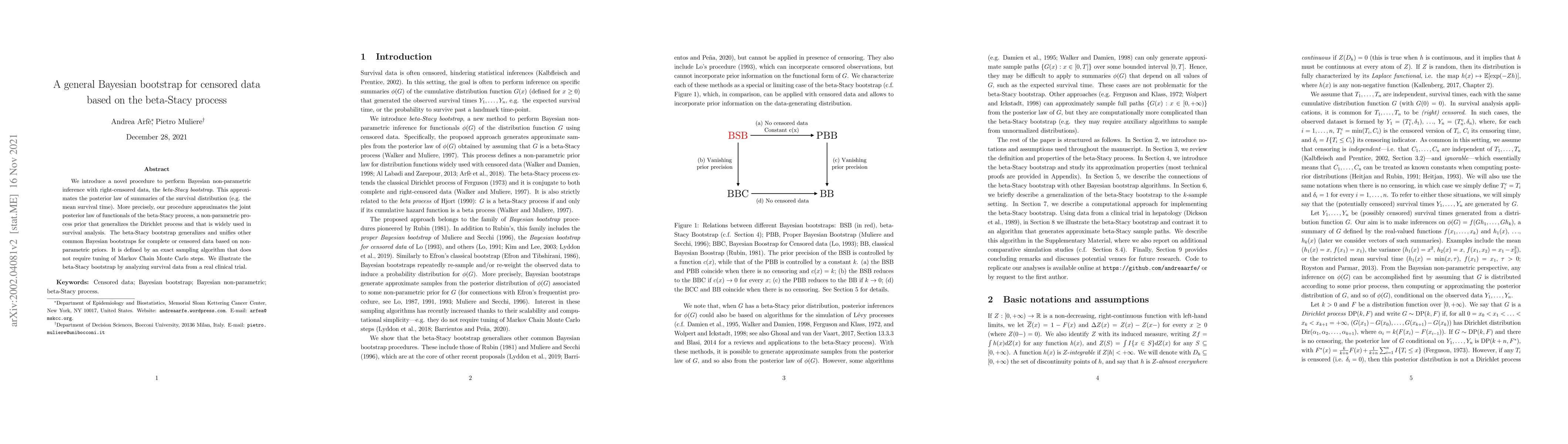 We introduce a novel procedure to perform Bayesian non-parametric inference with right-censored data, the \emph{beta-Stacy bootstrap}. This approximates the posterior law of summaries of the survival distribution (e.g. the mean survival time). More precisely, our procedure approximates the joint posterior law of functionals of the beta-Stacy process, a non-parametric process prior that generalizes the Dirichlet process and that is widely used in survival analysis. The beta-Stacy bootstrap generalizes and unifies other common Bayesian bootstraps for complete or censored data based on non-parametric priors. It is defined by an exact sampling algorithm that does not require tuning of Markov Chain Monte Carlo steps. We illustrate the beta-Stacy bootstrap by analyzing survival data from a real clinical trial.
