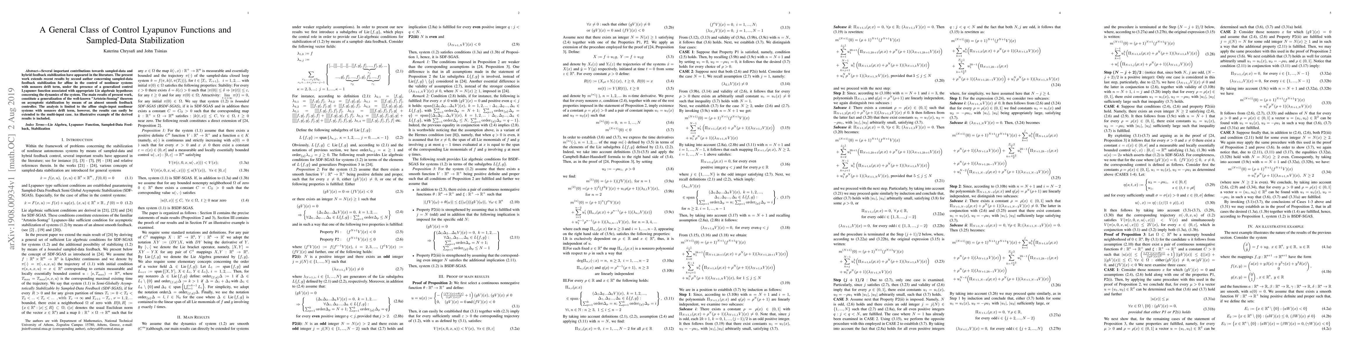 This paper generalizes sampled-data stabilization techniques for nonlinear systems using a class of control Lyapunov functions and Lie algebraic hypotheses. It extends the Artstein-Sontag theorem to almost smooth feedback controllers, focusing on affine single-input systems but extendable to multi-input cases.