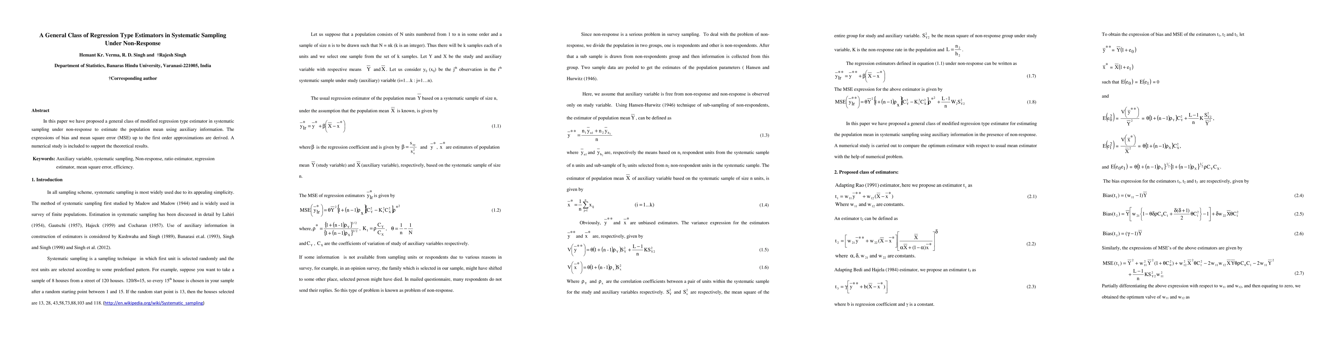 Researchers proposed a new class of estimators to estimate population means in systematic sampling with non-response, improving accuracy using auxiliary information. A numerical study supports the theoretical results.
