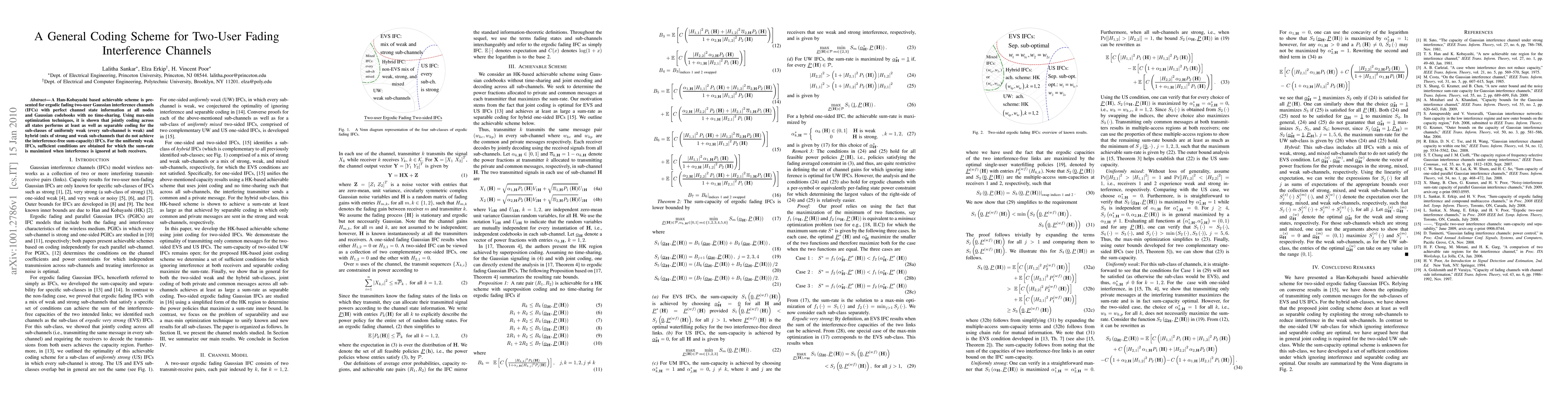 This paper proposes a Han-Kobayashi based coding scheme for ergodic fading two-user interference channels, demonstrating that joint coding across all states achieves at least the same performance as separable coding for uniformly weak and hybrid interference channels. For uniformly weak channels, it finds conditions where ignoring interference maximizes sum-rate.