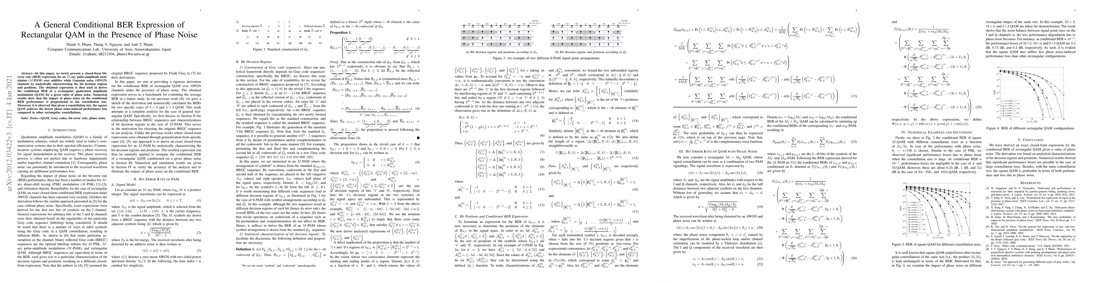 This paper derives a closed-form conditional BER expression for rectangular QAM in the presence of phase noise, showing that phase noise impacts BER performance proportionally to the constellation size. It finds that among rectangular constellations, square QAM experiences the least performance loss due to phase noise.