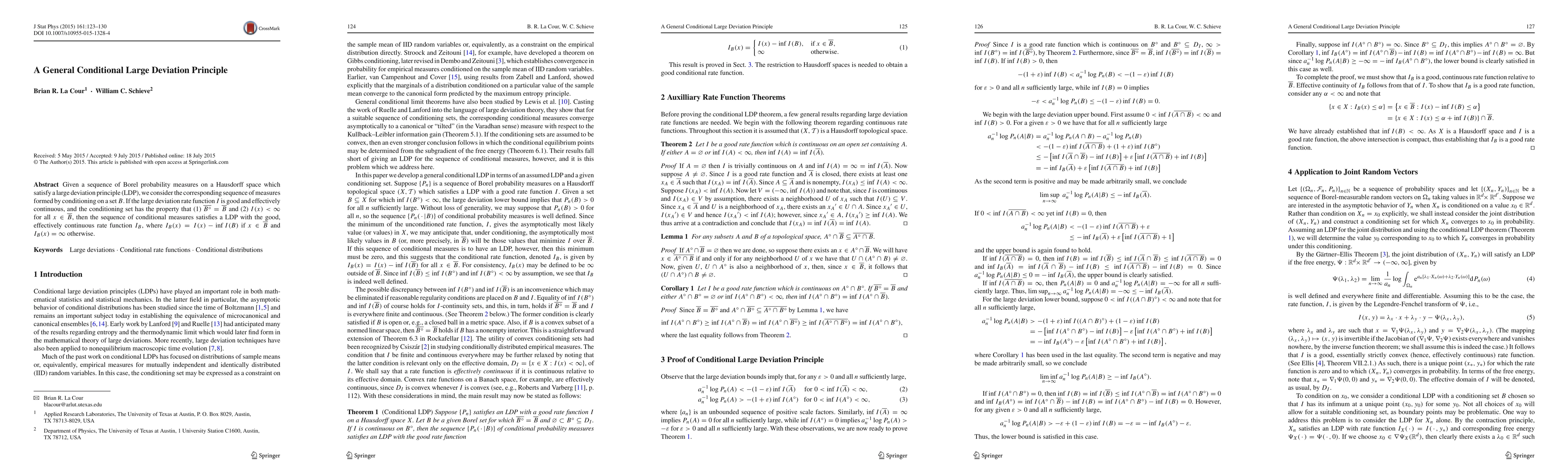 Given a sequence of Borel probability measures on a Hausdorff space which satisfy a large deviation principle, we consider the corresponding sequence of measures formed by conditioning on a set $B$. If the large deviation rate function $I$ is good and effectively continuous and the conditioning set has the property that (1) $\overline{B^\circ} = \overline{B}$ and (2) $I(x) < \infty$ for all $x \in \overline{B}$, then the sequence of conditional measures satisfies a large deviation principle with the good, effectively continuous rate function $I_B$, where $I_B(x) = I(x)-\inf I(B)$ if $x\in\overline{B}$ and $I_B(x) = \infty$ otherwise.