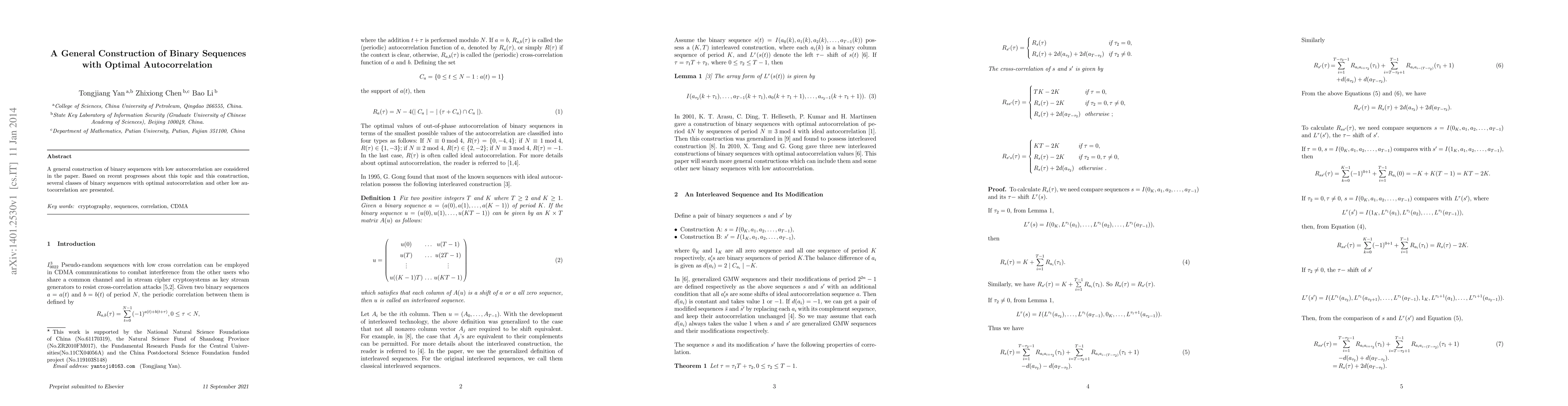 Summary: This paper presents a general construction method for binary sequences with optimal low autocorrelation. It introduces several classes of sequences based on recent advancements, achieving optimal autocorrelation properties.