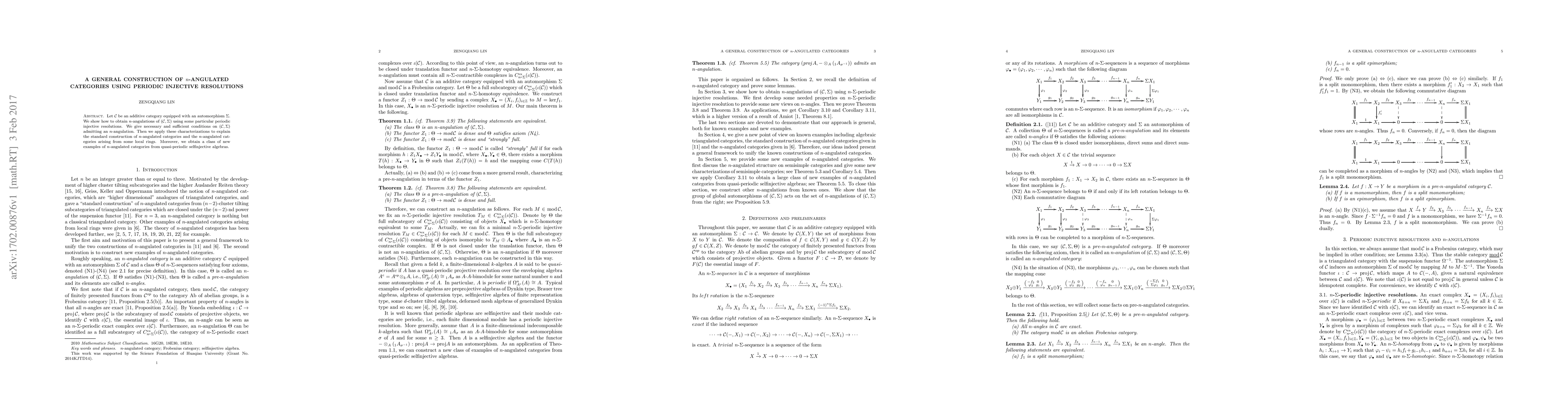 Let $\mathcal{C}$ be an additive category equipped with an automorphism $\Sigma$. We show how to obtain $n$-angulations of $(\mathcal{C},\Sigma)$ using some particular periodic injective resolutions. We give necessary and sufficient conditions on $(\mathcal{C},\Sigma)$ admitting an $n$-angulation. Then we apply these characterizations to explain the standard construction of $n$-angulated categories and the $n$-angulated categories arising from some local rings. Moreover, we obtain a class of new examples of $n$-angulated categories from quasi-periodic selfinjective algebras.