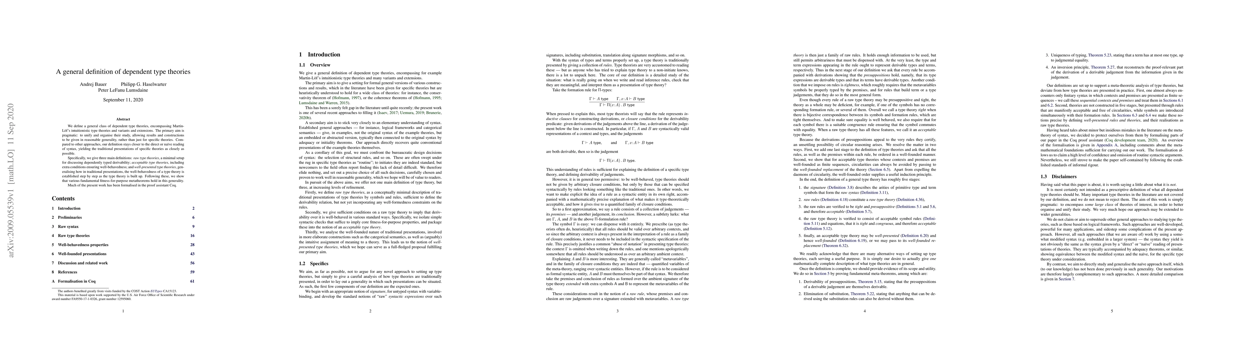 This paper defines a general class of dependent type theories, unifying Martin-Löf's intuitionistic type theories and their variants. It introduces three main definitions: raw, acceptable, and well-presented type theories, and demonstrates that fundamental metatheorems hold in this generality, with significant portions formalized in Coq.
