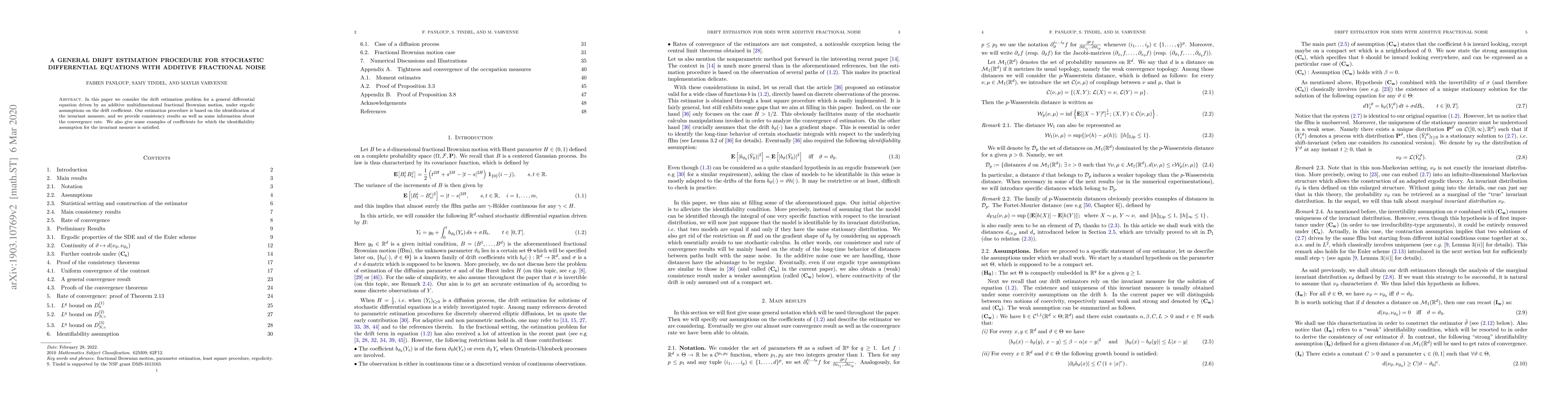 A new method for estimating drift in stochastic differential equations driven by additive fractional noise is presented, showing consistency and convergence rate results under ergodic assumptions on the drift coefficient.
