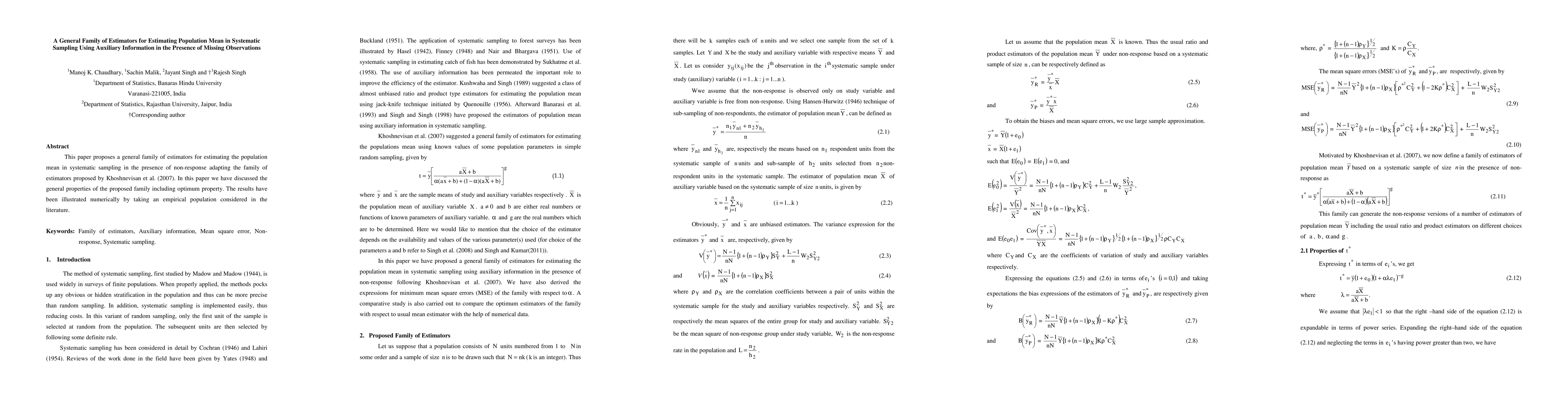 This paper proposes a new family of estimators for estimating population mean in systematic sampling, incorporating auxiliary information to handle missing observations. The study discusses the general properties and optimum characteristics of the proposed estimators, validated through numerical analysis using an empirical population.