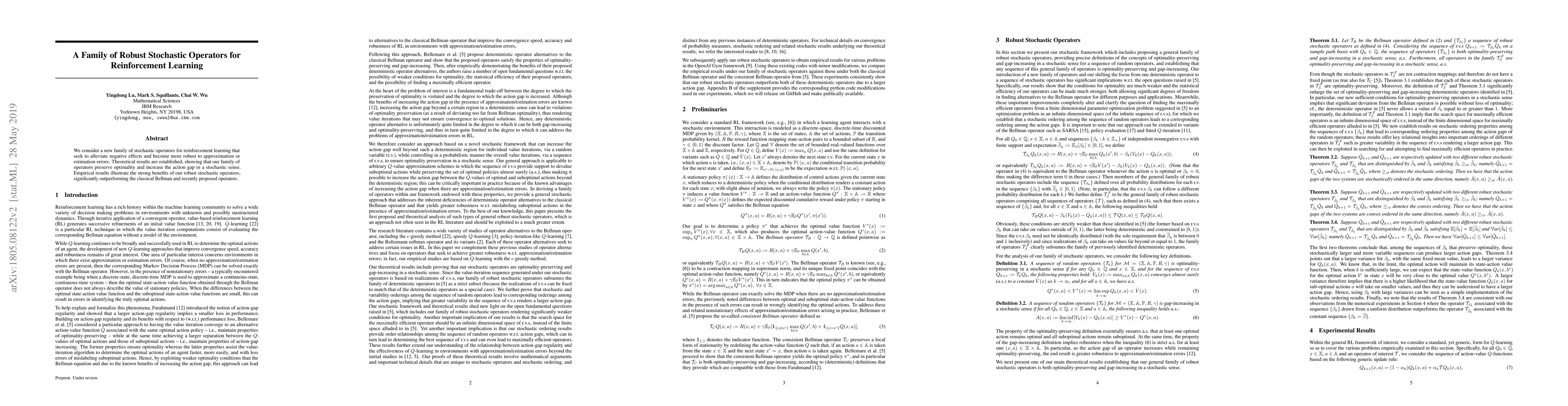 This research introduces a novel family of stochastic operators for reinforcement learning, designed to mitigate errors from approximation or estimation. Theoretical proofs confirm these operators preserve optimality and enhance action gaps, while empirical results demonstrate significant performance improvements over traditional and newer operators.