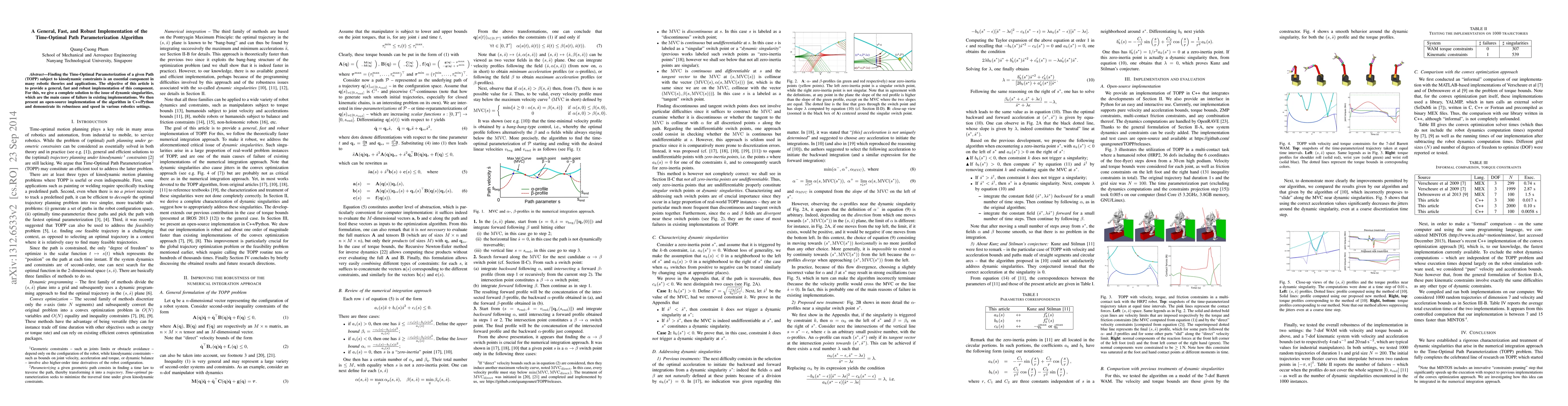 Finding the Time-Optimal Parameterization of a given Path (TOPP) subject to kinodynamic constraints is an essential component in many robotic theories and applications. The objective of this article is to provide a general, fast and robust implementation of this component. For this, we give a complete solution to the issue of dynamic singularities, which are the main cause of failure in existing implementations. We then present an open-source implementation of the algorithm in C++/Python and demonstrate its robustness and speed in various robotics settings.