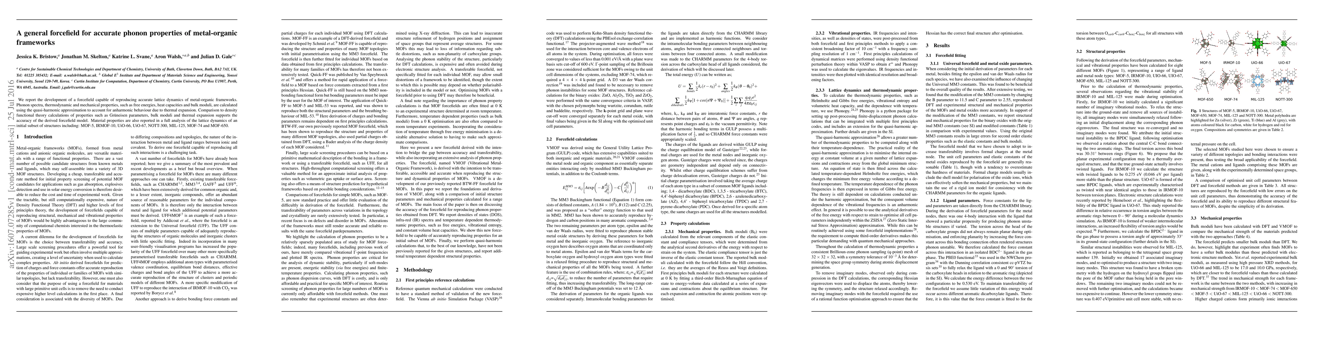 This paper develops a new forcefield to accurately model the lattice dynamics of metal-organic frameworks (MOFs), including phonon spectra and thermodynamic/mechanical properties. The forcefield's accuracy is validated by comparing its results to density functional theory calculations, and it is applied to analyze the lattice dynamics of several MOFs.