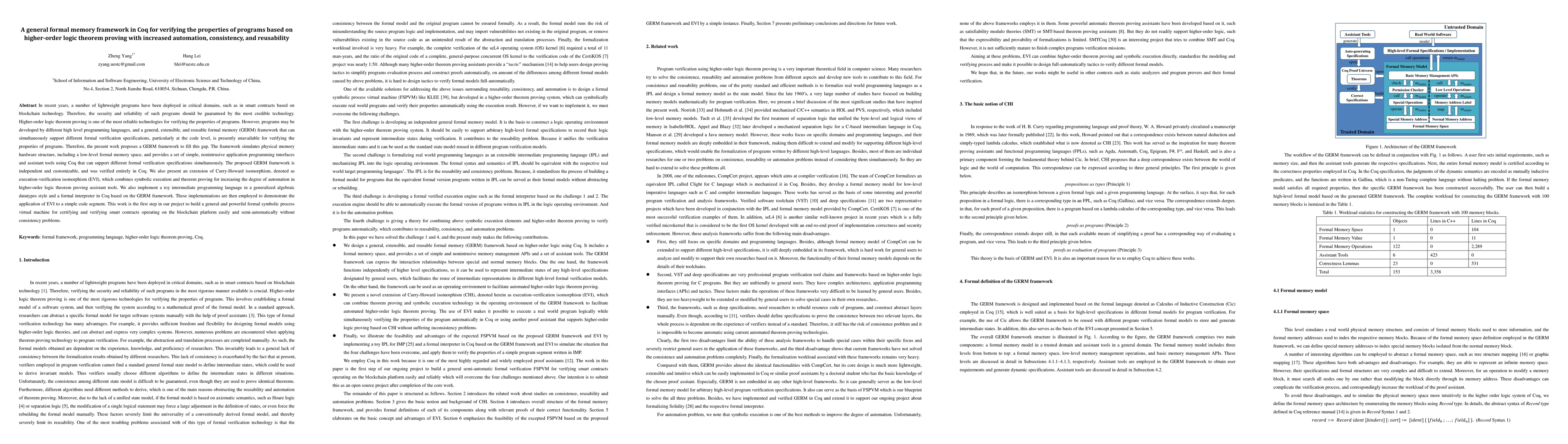 This paper proposes a General Extensible and Reusable Memory (GERM) framework in Coq for verifying program properties using higher-order logic theorem proving, aiming to enhance automation, consistency, and reusability. The framework integrates an execution-verification isomorphism (EVI) to combine symbolic execution and theorem proving for increased automation.