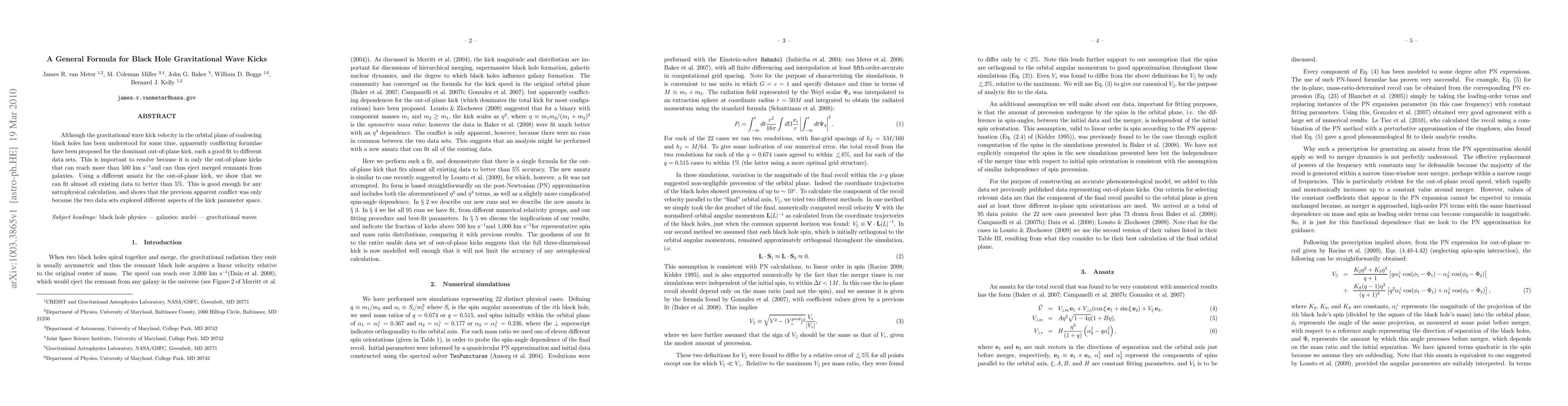 This paper presents a unified formula for black hole gravitational wave kicks, resolving previous conflicting formulae. The new formula fits existing data within 5%, indicating the discrepancies were due to different data set aspects, not formula errors.