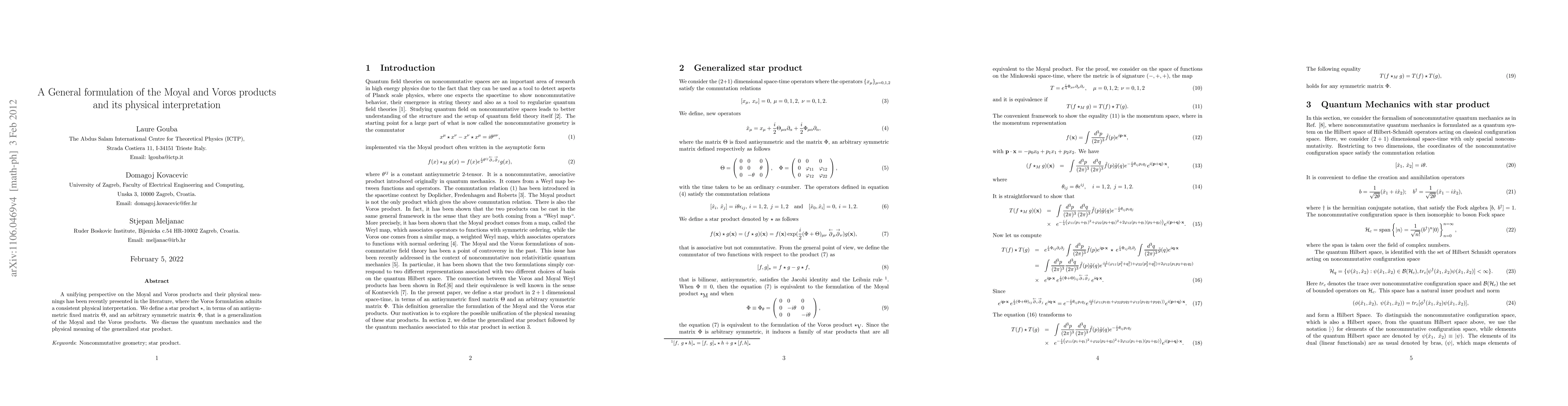 A unifying perspective on the Moyal and Voros products and their physical meanings has been recently presented in the literature, where the Voros formulation admits a consistent physical interpretation. We define a star product $\star$, in terms of an antisymmetric fixed matrix $\Theta$, and an arbitrary symmetric matrix $\Phi$, that is a generalization of the Moyal and the Voros products. We discuss the quantum mechanics and the physical meaning of the generalized star product.