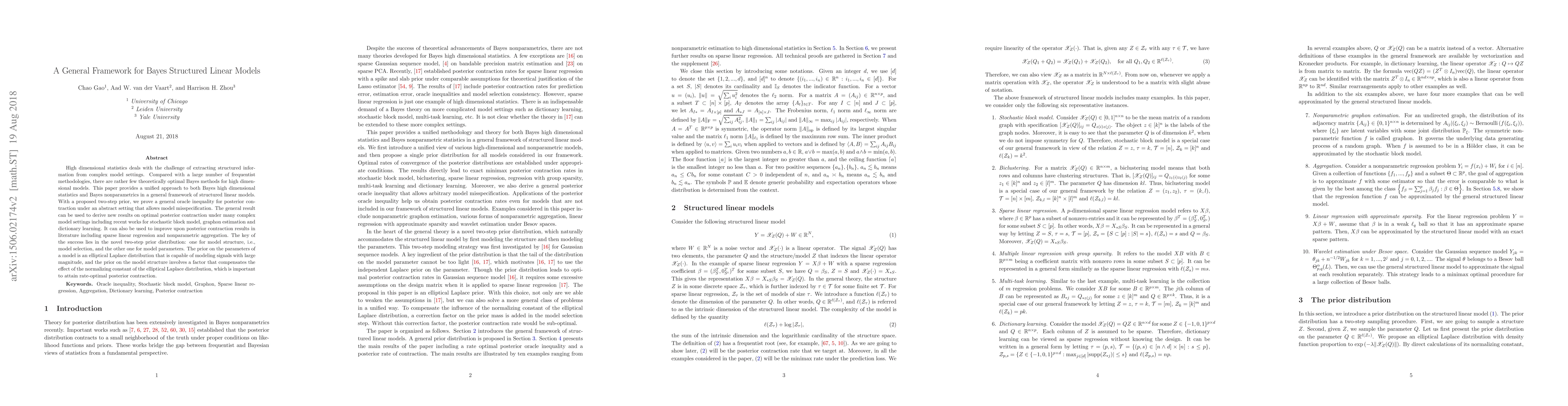 This paper introduces a unified framework for Bayesian structured linear models, providing a two-step model selection prior that enables optimal posterior contraction in high-dimensional settings. The proposed method improves upon previous results in sparse linear regression and nonparametric aggregation.