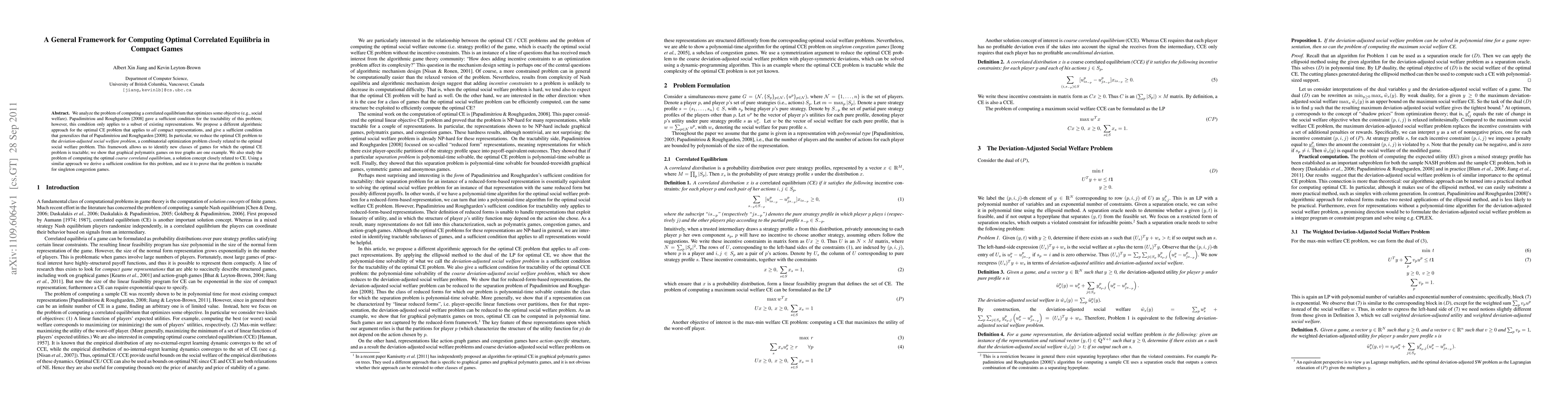 The paper proposes a new algorithmic approach for computing optimal correlated equilibria in succinct game representations, extending previous work by Papadimitriou and Roughgarden (2008).
