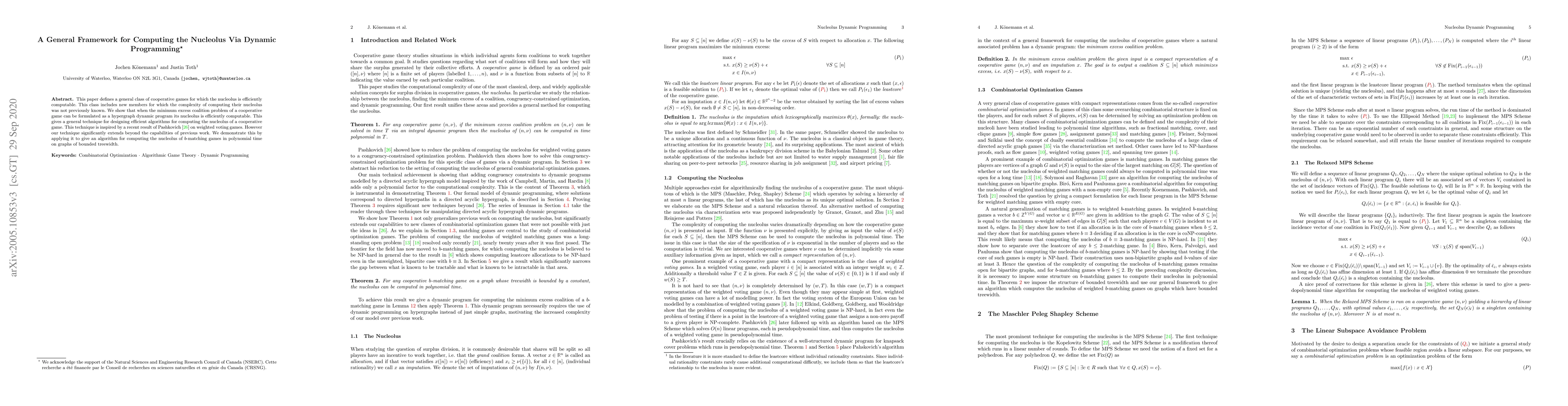 This paper presents a dynamic programming framework for efficiently computing the nucleolus of cooperative games, extending the method to new classes of games, including b-matching games on graphs with bounded treewidth, and improving upon previous algorithmic techniques.