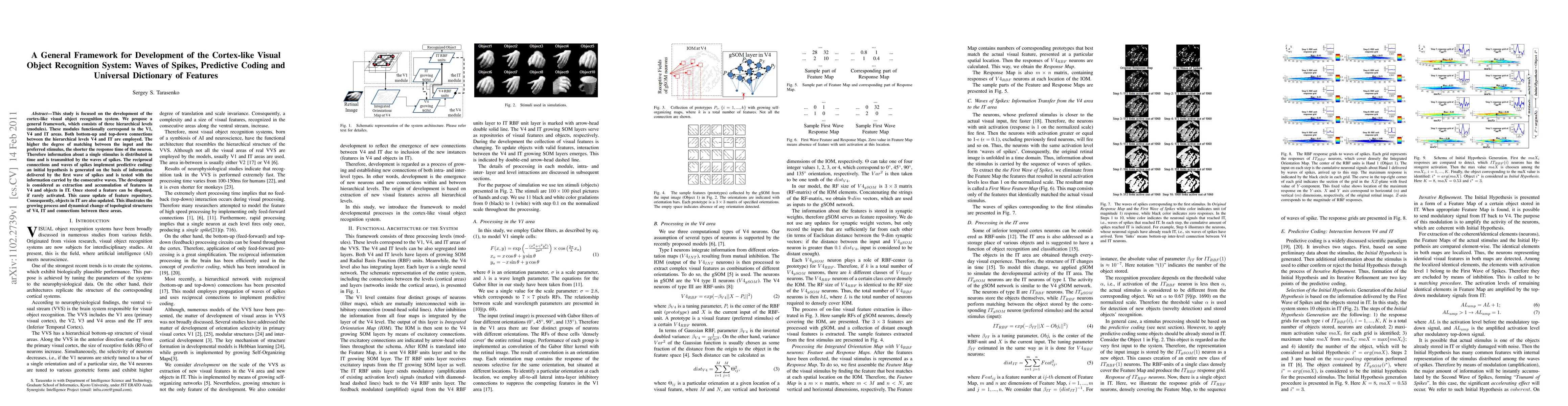 Researchers propose a general framework for developing a brain-like visual object recognition system, incorporating predictive coding and universal dictionary of features to improve efficiency and accuracy. The system consists of three hierarchical levels, with bottom-up and top-down connections between them, enabling the extraction and accumulation of features over time.