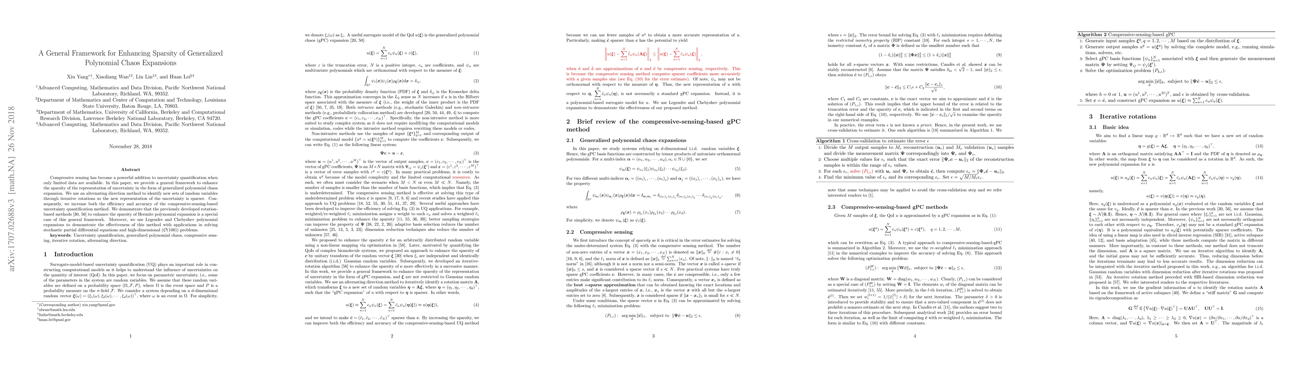 This paper presents a general framework to improve the sparsity of generalized polynomial chaos expansions for compressive sensing, using an alternating direction method to iteratively rotate random variables for more efficient and accurate uncertainty quantification. The framework encompasses previous methods for Hermite polynomial expansions and demonstrates effectiveness with Legendre and Chebyshev polynomials in solving stochastic partial differential equations and high-dimensional problems.