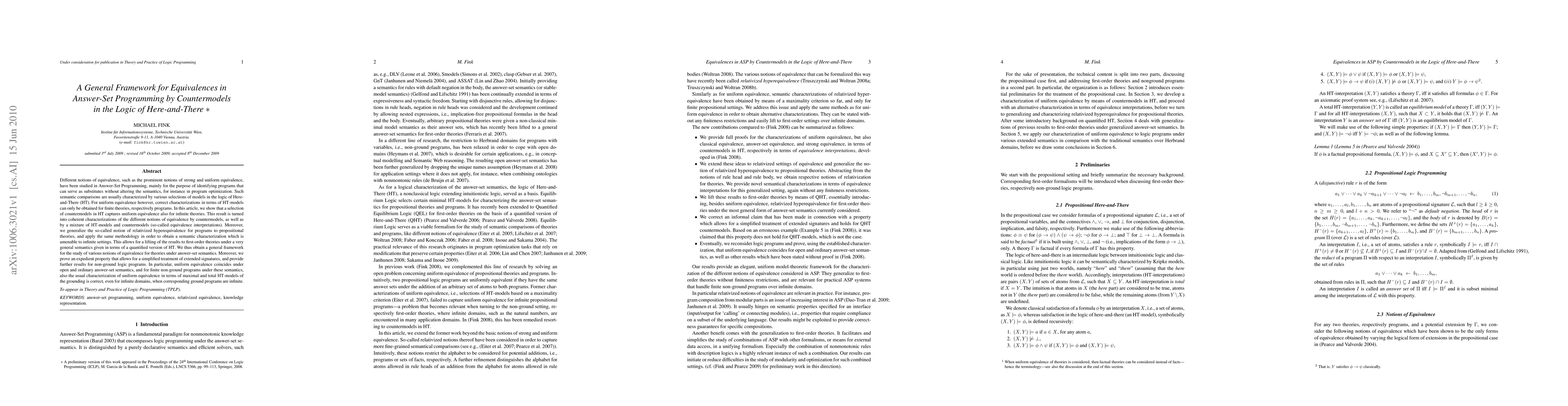 Different notions of equivalence, such as the prominent notions of strong and uniform equivalence, have been studied in Answer-Set Programming, mainly for the purpose of identifying programs that can serve as substitutes without altering the semantics, for instance in program optimization. Such semantic comparisons are usually characterized by various selections of models in the logic of Here-and-There (HT). For uniform equivalence however, correct characterizations in terms of HT-models can only be obtained for finite theories, respectively programs. In this article, we show that a selection of countermodels in HT captures uniform equivalence also for infinite theories. This result is turned into coherent characterizations of the different notions of equivalence by countermodels, as well as by a mixture of HT-models and countermodels (so-called equivalence interpretations). Moreover, we generalize the so-called notion of relativized hyperequivalence for programs to propositional theories, and apply the same methodology in order to obtain a semantic characterization which is amenable to infinite settings. This allows for a lifting of the results to first-order theories under a very general semantics given in terms of a quantified version of HT. We thus obtain a general framework for the study of various notions of equivalence for theories under answer-set semantics. Moreover, we prove an expedient property that allows for a simplified treatment of extended signatures, and provide further results for non-ground logic programs. In particular, uniform equivalence coincides under open and ordinary answer-set semantics, and for finite non-ground programs under these semantics, also the usual characterization of uniform equivalence in terms of maximal and total HT-models of the grounding is correct, even for infinite domains, when corresponding ground programs are infinite.