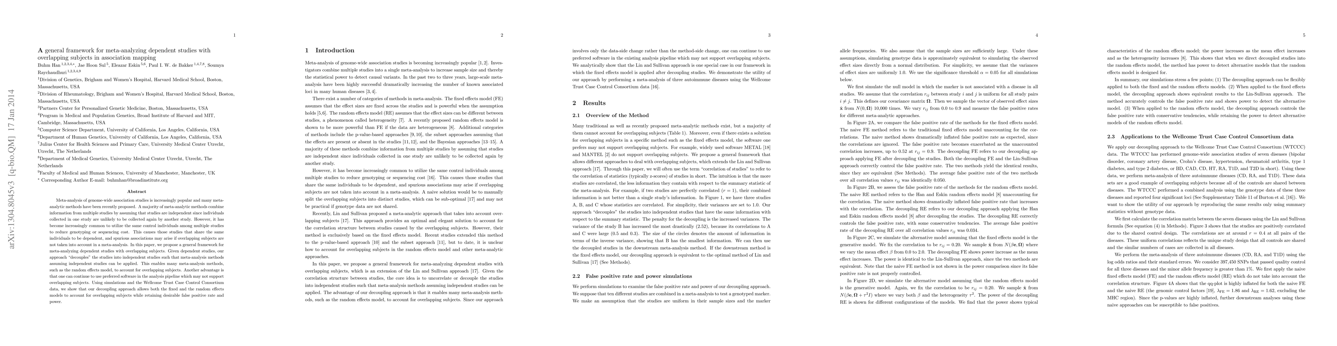 This paper proposes a framework for meta-analyzing dependent genome-wide association studies that share overlapping subjects. The method "decouples" dependent studies to simulate independence, enabling the application of existing meta-analysis tools while maintaining control over false positives and statistical power.