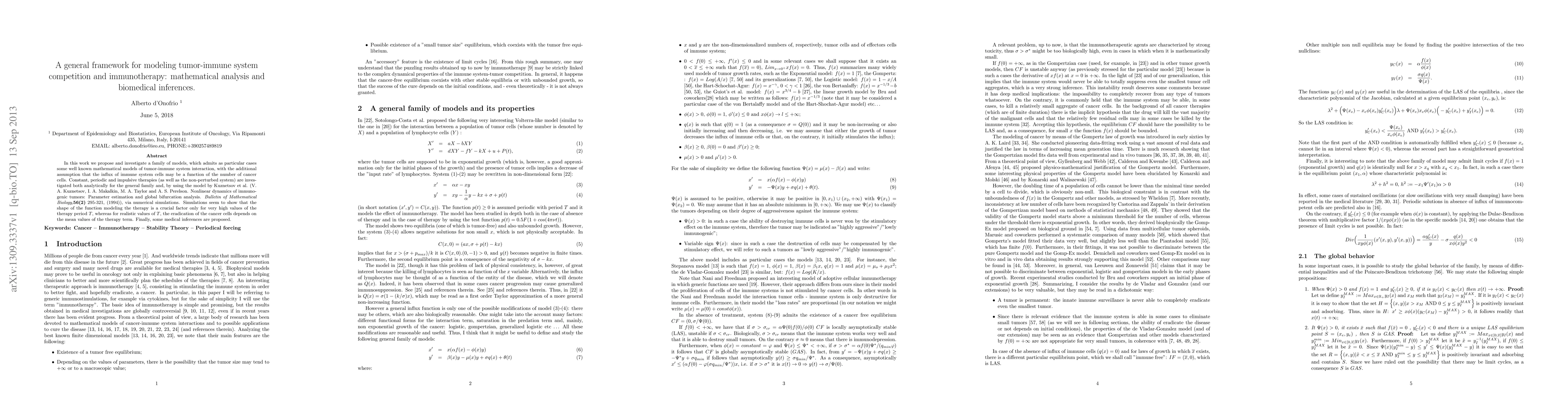 Researchers developed a general framework to model tumor-immune system competition and immunotherapy, highlighting the importance of therapy function shape for high therapy periods but mean values for realistic ones.
