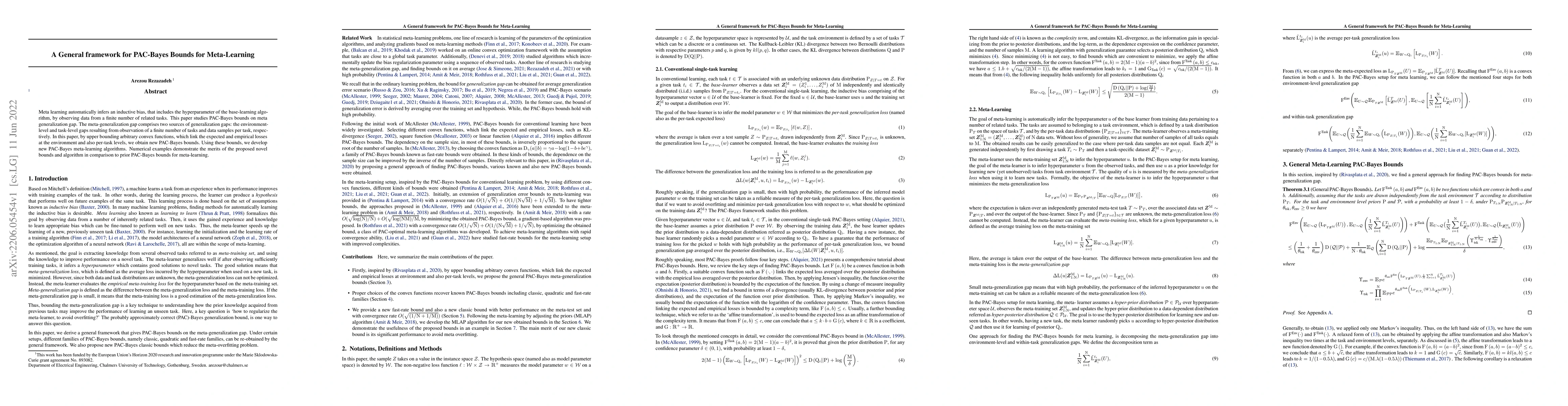 This paper proposes a new framework for PAC-Bayes bounds in meta-learning, addressing both environment-level and task-level generalization gaps. It introduces novel bounds by upper bounding arbitrary convex functions linking expected and empirical losses, and develops corresponding meta-learning algorithms, which outperform prior methods as shown by numerical examples.