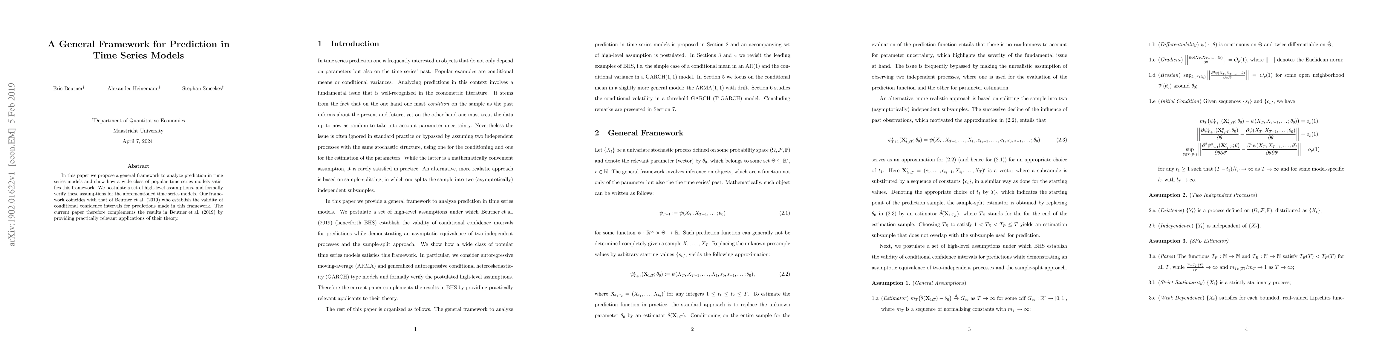 Researchers propose a general framework for predicting time series models, verifying assumptions and building on previous work to provide practical applications.