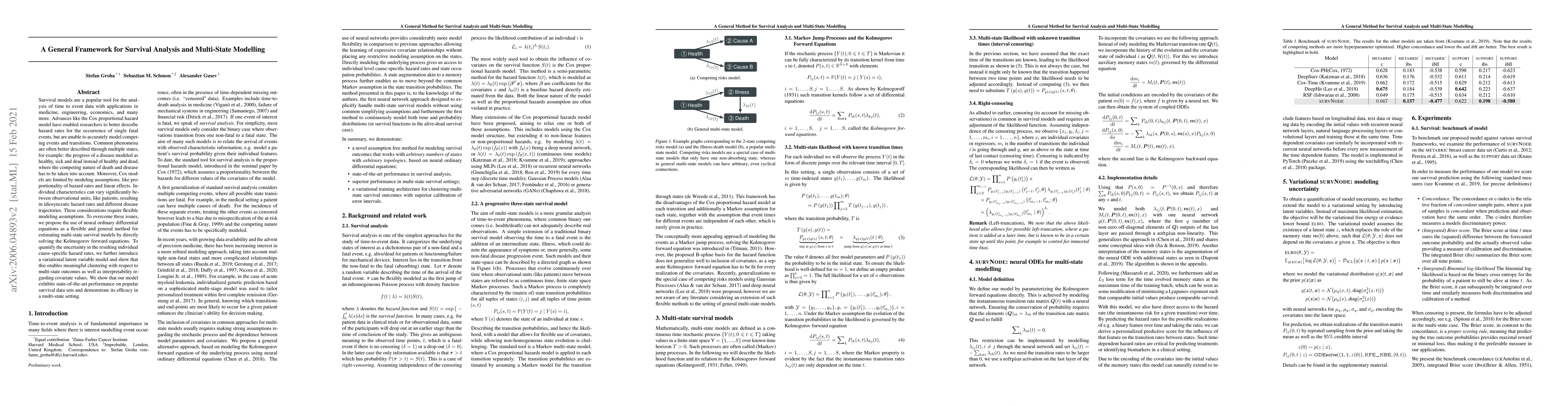 The paper proposes a flexible and general method for multi-state survival analysis using neural ordinary differential equations (neural ODEs), directly solving Kolmogorov forward equations. It introduces a variational latent variable model for uncertainty quantification, enabling meaningful clustering and interpretability.