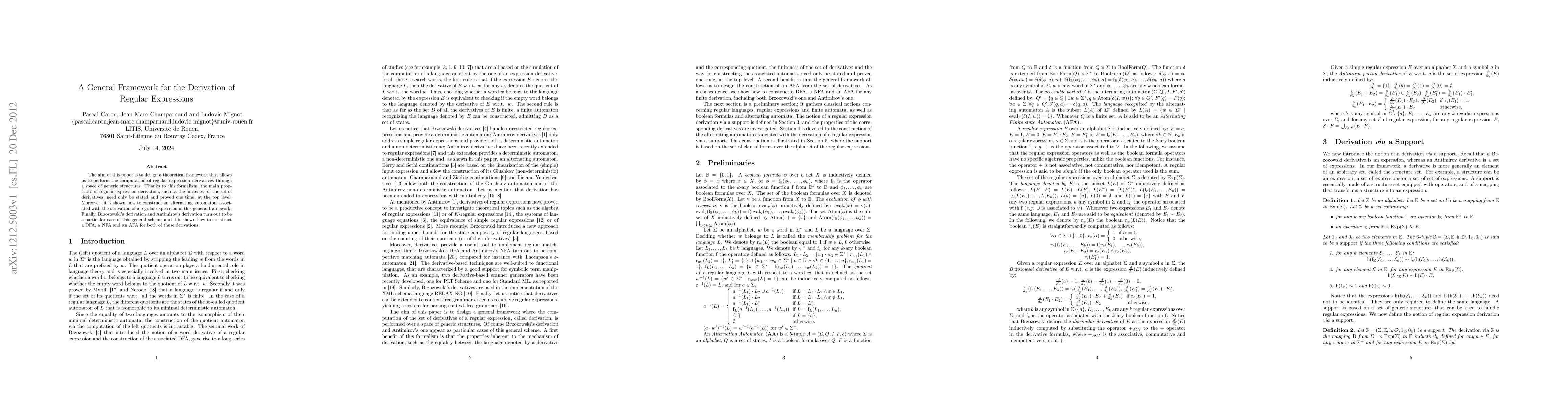The aim of this paper is to design a theoretical framework that allows us to perform the computation of regular expression derivatives through a space of generic structures. Thanks to this formalism, the main properties of regular expression derivation, such as the finiteness of the set of derivatives, need only be stated and proved one time, at the top level. Moreover, it is shown how to construct an alternating automaton associated with the derivation of a regular expression in this general framework. Finally, Brzozowski's derivation and Antimirov's derivation turn out to be a particular case of this general scheme and it is shown how to construct a DFA, a NFA and an AFA for both of these derivations.