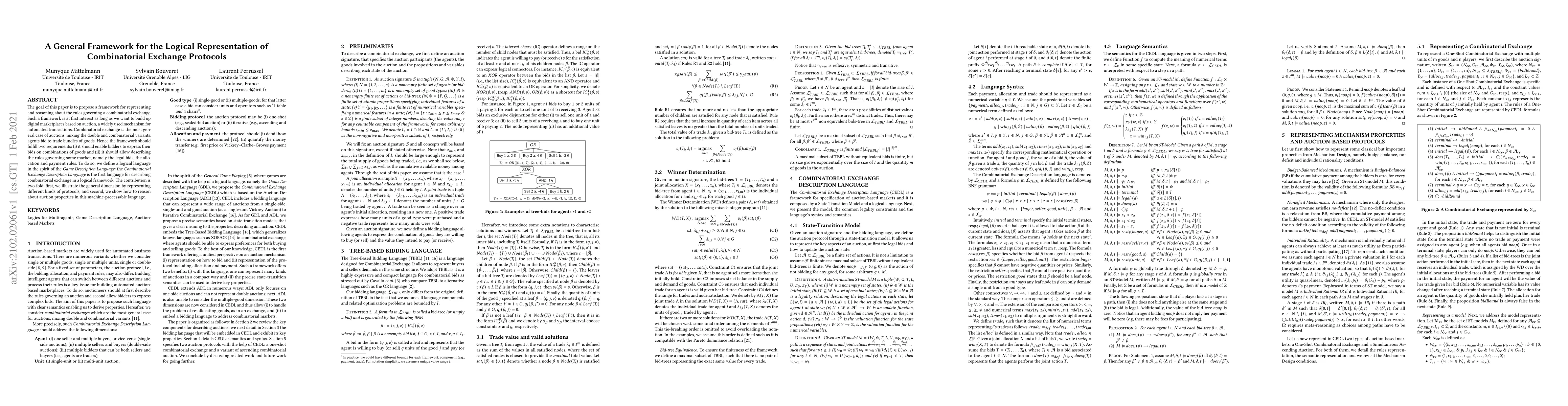 The goal of this paper is to propose a framework for representing and reasoning about the rules governing a combinatorial exchange. Such a framework is at first interest as long as we want to build up digital marketplaces based on auction, a widely used mechanism for automated transactions. Combinatorial exchange is the most general case of auctions, mixing the double and combinatorial variants: agents bid to trade bundles of goods. Hence the framework should fulfill two requirements: (i) it should enable bidders to express their bids on combinations of goods and (ii) it should allow describing the rules governing some market, namely the legal bids, the allocation and payment rules. To do so, we define a logical language in the spirit of the Game Description Language: the Combinatorial Exchange Description Language is the first language for describing combinatorial exchange in a logical framework. The contribution is two-fold: first, we illustrate the general dimension by representing different kinds of protocols, and second, we show how to reason about auction properties in this machine-processable language.