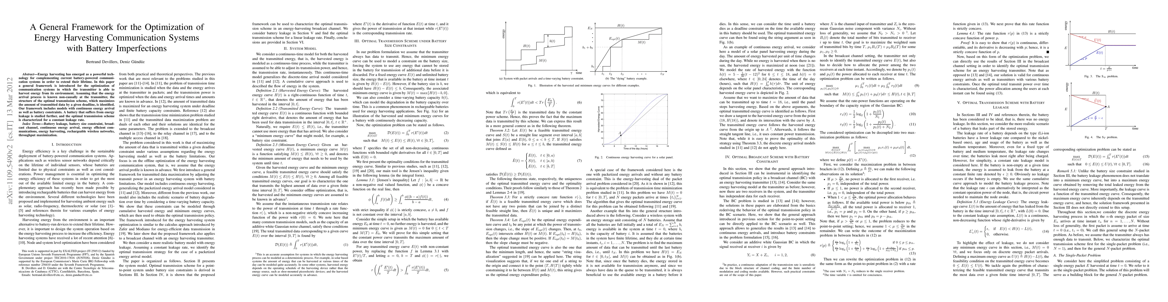 This paper presents a general framework optimizing energy-harvesting communication systems, considering battery imperfections. It identifies the optimal transmission scheme maximizing data transmission by a deadline, accommodating continuous energy arrival and battery constraints. The study also examines a battery with constant energy leakage, characterizing the optimal transmission scheme under such conditions.