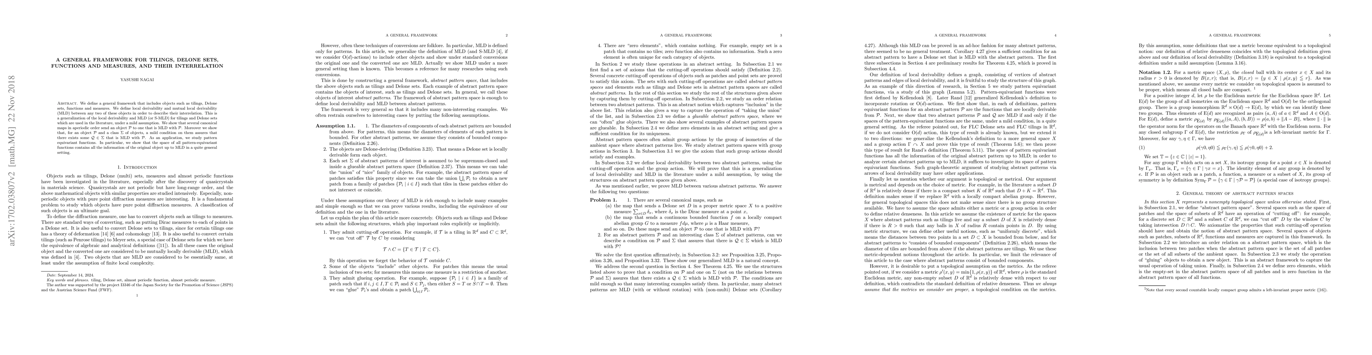 This paper establishes a general framework encompassing tilings, Delone sets, functions, and measures, defining their interrelation through local derivability and mutual local derivability (MLD). It demonstrates that several canonical maps in aperiodic order preserve MLD, and under mild conditions, any object can be related to another via MLD, highlighting the significance of pattern equivariant functions.
