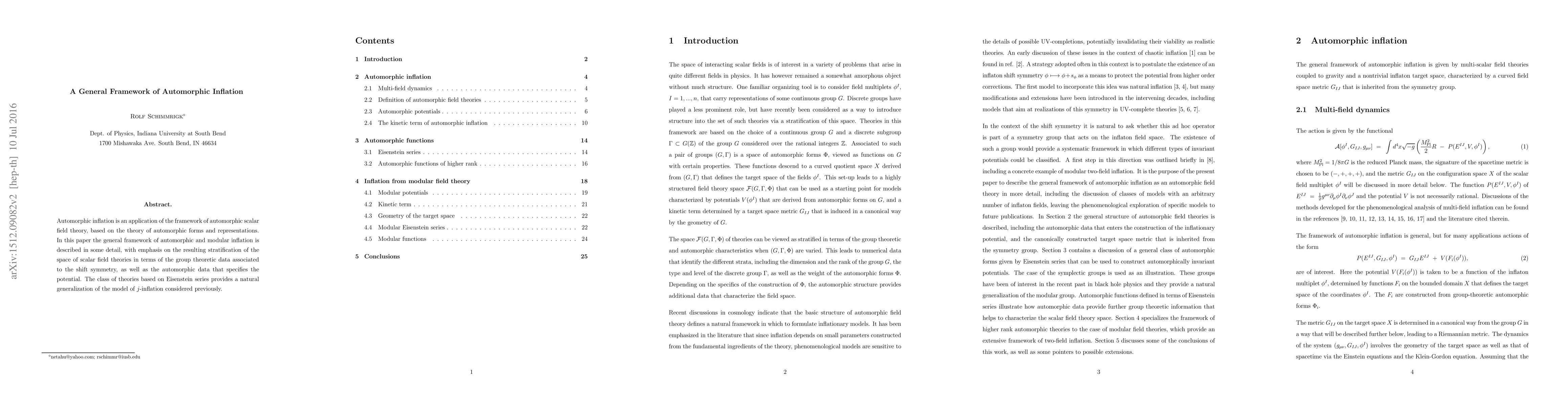 This paper proposes a general framework for automorphic inflation, which generalizes a previous model of $j$-inflation and provides a natural class of theories based on Eisenstein series.