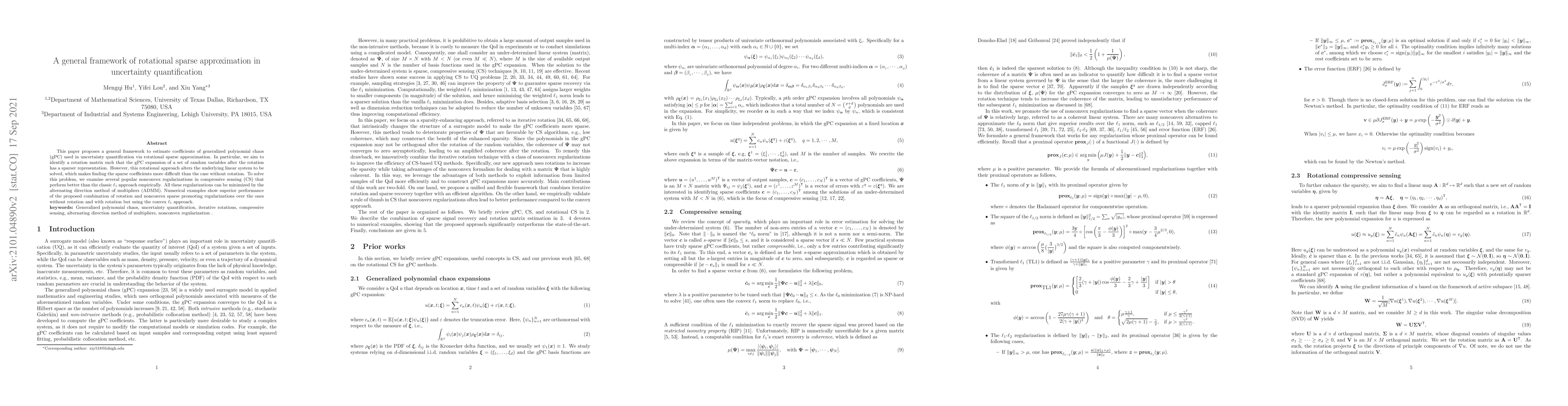 This paper introduces a framework for estimating generalized polynomial chaos coefficients using rotational sparse approximation in uncertainty quantification, employing nonconvex regularizations over the l1 method to achieve better performance, and demonstrating improved results via the alternating direction method of multipliers (ADMM). Numerical examples highlight the effectiveness of the proposed rotational approach combined with advanced sparse regularization techniques.
